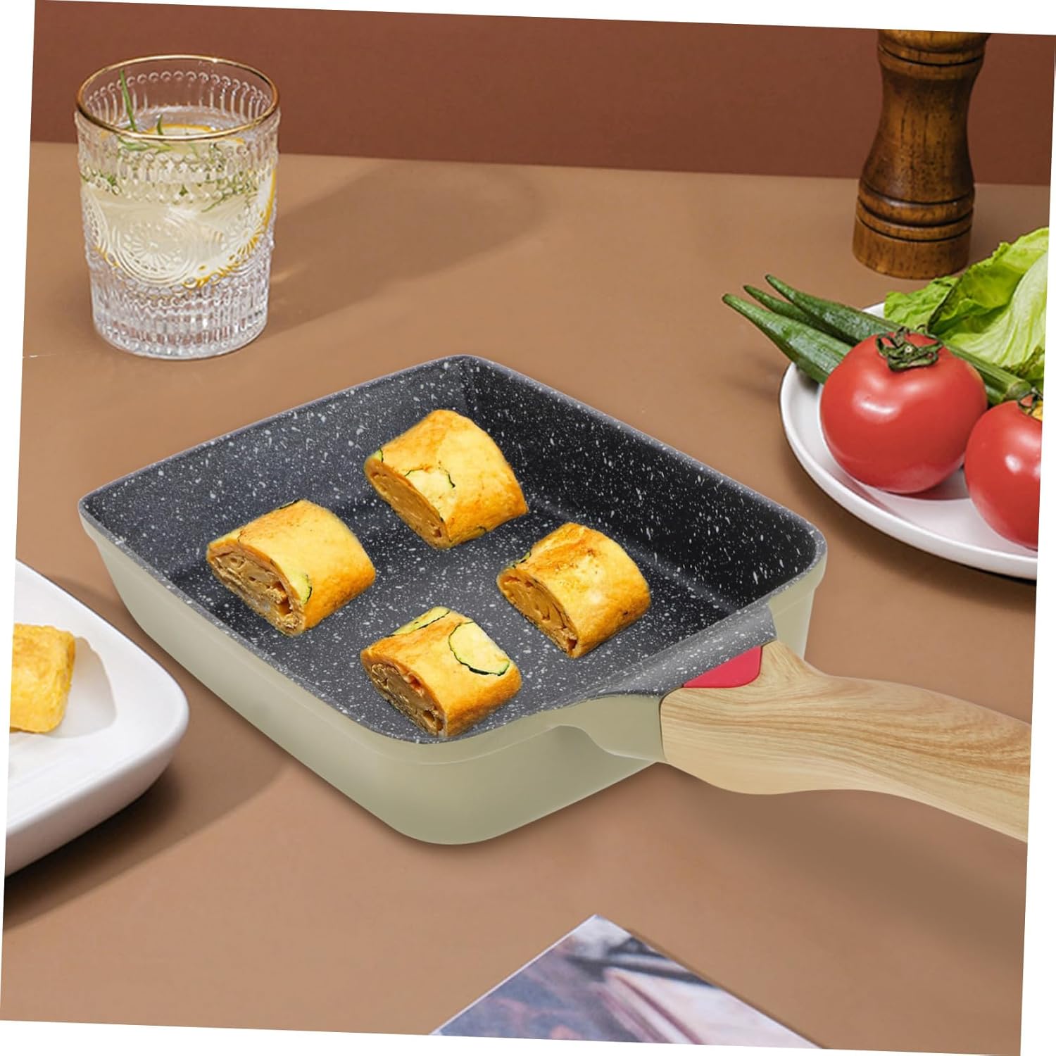 Package List 1 x Frying Pan Characteristics -Material: Aluminum Alloy & Wood Kitchen Frying Pan -Size: Approx. 36.50X15.00X4.00cm / 14.34X5.89X1.57in Omelette Pan - It comes with a handle, which can prevent scalding and burning your hands Japanese Square Pan. - Non-stick coating for easy-release, even and quick heat conduction a healthy cooking experience Non-stick Pan. - for omelets, sandwiches, and pancakes, the non-stick cooking pan is easy to clean. Square Skillet - Suitable for toast, vegetables, fried eggs, burgers, Tamagoyaki, chicken, fish, steak, and other dishes Square Steak Frying Pan. - Multi-functional and versatile, can be used for frying, baking, grilling, broiling, braising, boiling, cooking, etc Kitchen Gadget.Goods DescriptionOmelette Pan Suitable for home, restaurant, cake shop, breakfast shop, etc.Aluminium Tamagoyaki Pan You can use it to fry much food, such as steak, BBQ, vegetable, meat, and so on.Outdoor Camping Pot Are you still looking for a multi-functional frying pan? If so, our square skillet is carefully prepared for you