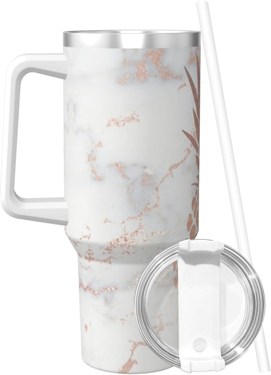Stainless Steel Vacuum Insulated Tumbler with Lid and Straw for Water, Iced Tea or CoffeeEasy to Clean and StoreYou can put it in the dishwasher (hand washing is recommended). The smooth mouth of the tumbler is large and easy to clean, adding ice cubes and fruit slices is also very convenient.Large Capacity40oz large capacity tumbler is perfect for sharing with others through cups during group outdoor activities.Best GiftThis fashionable and cute color is perfect for giving as a gift to friends and colleagues on birthdays or holidays, anyone will love it! Never out of style!What You Get:1 x 40 oz tumbler with handle1 x Leakproof lids1 x Reusable strawsLeak Proof 40 Oz Tumbler with Handle40 oz tumbler with threaded lid and silicone sealing ring can prevent your beverage from leaking.When you encounter bumps or jogging on the road, the drinks inside will not overflow.The lid will not fall or move, it's very stable and sturdy and won't burst.Whether you are driving, working, camping, beach, running, traveling, exercising, yoga, having a picnic or activitiesThis stylish and beautiful tumbler with lid and straw can help you drink enough water or beverages to keep hydrated.Enjoy your drink, enjoy your leisure time!