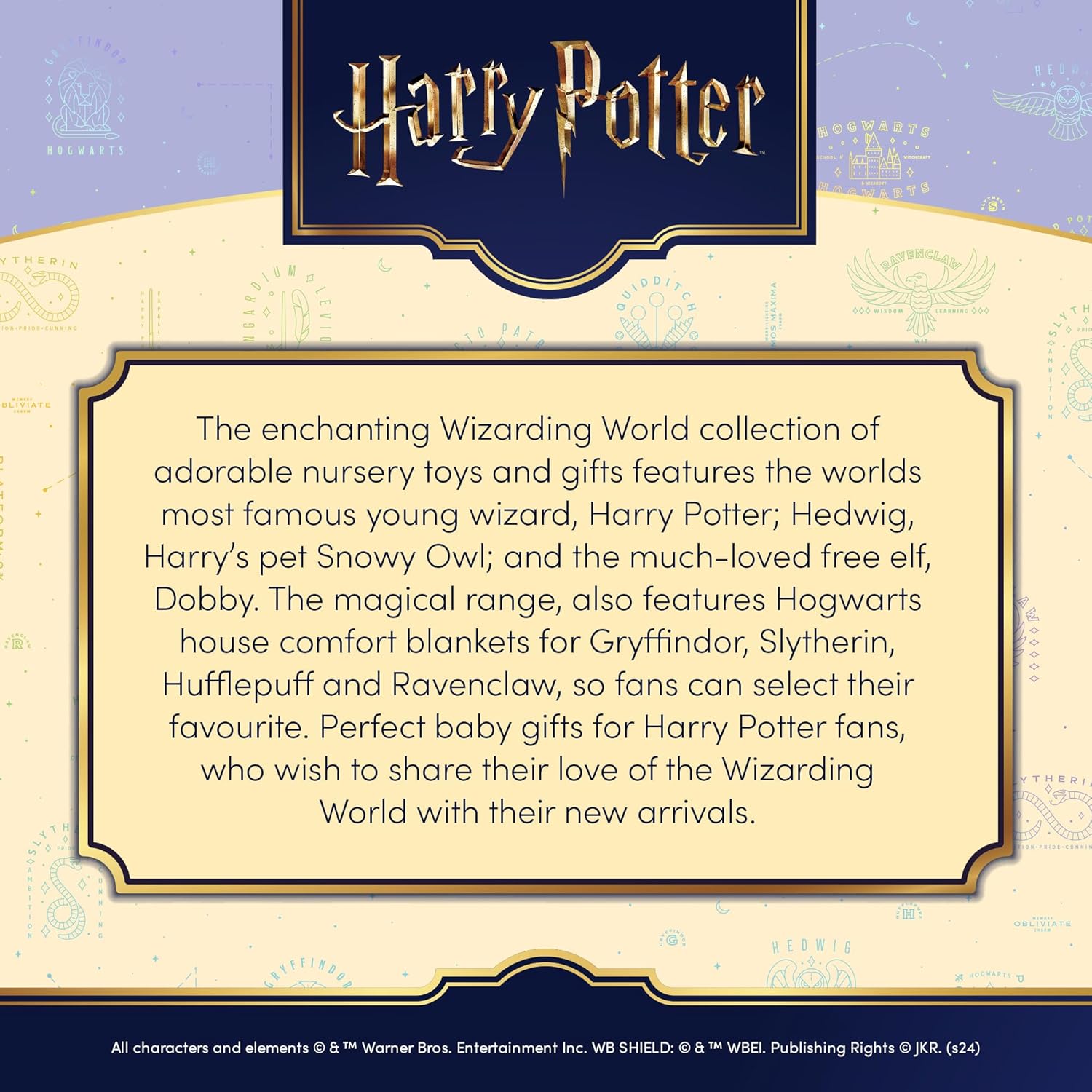 Magical Comfort for Little Wizards Wrap your little one in enchantment with our Dobby Comfort Blanket. This charming addition to our collection of comforters brings a touch of Hogwarts to bedtime. The velvety grey fabric, adorned with subtle stars, creates a soothing atmosphere for your baby. It's not just a blanket; it's a magical companion that will make naptime extra special. Cuddles with a Beloved Character Meet your child's new favourite snuggle buddy! Our Dobby blanket features an adorable, huggable version of the beloved house-elf, complete with embroidered details and soft, floppy ears. This cuddly companion is sure to become a treasured part of your little one's daily routine, offering comfort and a dash of magic from birth onwards. An Item That Casts a Spell Searching for something that will truly enchant? The Dobby Comfort Blanket is the ideal option. Its neutral colours complement any nursery decor, while the Harry Potter theme adds a whimsical touch. Crafted from the softest materials, this blanket is designed to be gentle on delicate skin, making it a wonderful option for new parents and Potter fans alike. -Soft, velvety grey blanket -Huggable Dobby house-elf design -Embroidered features and big ears -Subtle star details -Soothing, neutral colours