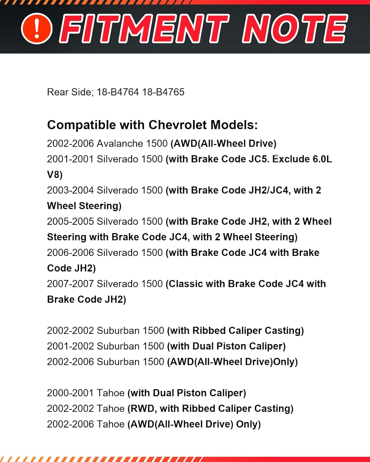 | Model | 18-B4764 18-B4765 |