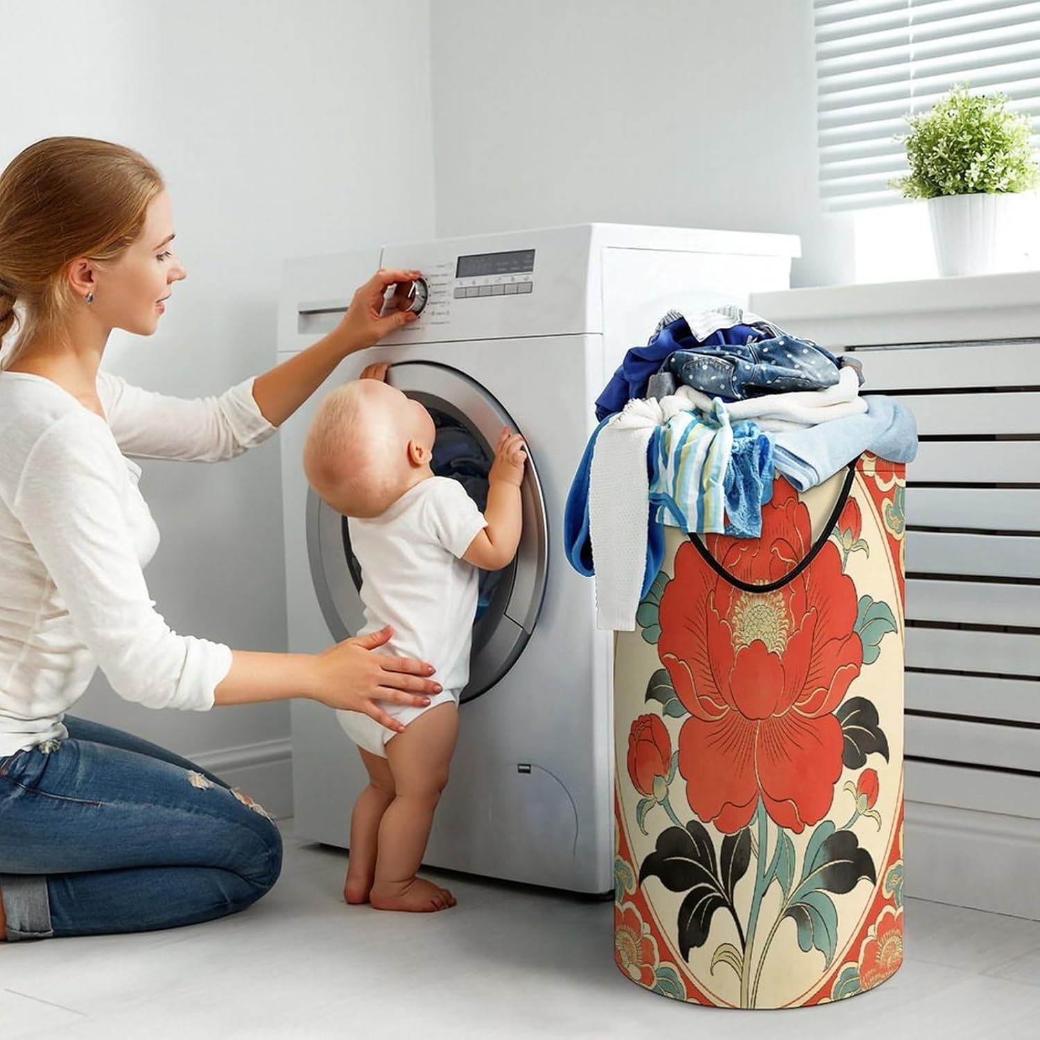Elevate your home organization with this Waterproof Red Classic Flower Laundry Hamper,expertly crafted from grade polyester.The Foldable Laundry Hamper features dual comfort-grip handles for smooth transport from bedroom to laundry room,and its freestanding structure requires no additional support-ideal for narrow corners or tight spaces.Designed as a Clothes Organizer Basket,it maintains its shape even when fully loaded,providing dependable storage.This versatile Clothes Hamper for Bedroom Storage effortlessly transitions between roles: organize dirty laundry,stash seasonal garments,or corral household miscellany.Its generous capacity accommodates bulky towels,bedding,or multiple outfits,streamlining your routine.As a Freestanding Tall Clothes Hamper,it maximizes vertical space in closets,bathrooms,or under shelves.The Narrow Laundry Bag design fits snugly against walls,making it perfect for apartments,RVs,or dorm rooms.Embrace hassle-free tidying with this Funny Red Classic Flower Laundry Hamper,which folds into a compact cylinder for travel or seasonal storage.Lightweight and portable,it’s ideal for quick clean-ups,gym visits,or trips.The vibrant heat-transfer prints add personality to any space,turning a mundane chore into a cheerful ritual.Whether used for weekly washes or as a playful Room Decor Laundry Hamper,it blends practicality with aesthetic charm.