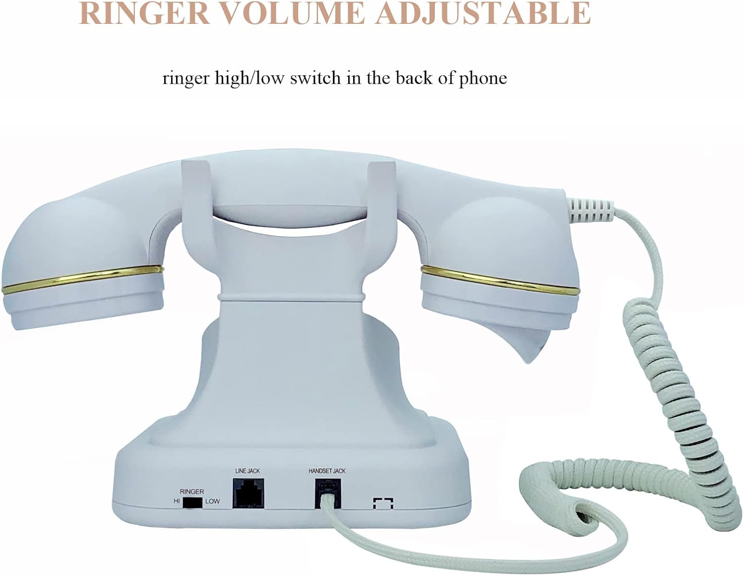Classic Vintage Retro Corded Landline Phone Old Fashioned Easy Push Dial Home Phone This is a retro-styled 1930s European-style telephone. You dial exactly as you would have done in the 1930s.The high-quality microphone and speaker in the classical receiver handset assure excellent voice quality. This high quality retro telephone is ideal for the home, office, hotel, school, movies, shops or other places. Not only practical but also can as an ancient decoration. Instruction 1. Put the telephone in flat area, keep it stable. 2. Connect the cable correctly according to the manual. 3. Pick up the handset, dial the required telephone number and wait to be connected. 4. Put the receiver back to the cradle to end the phone call. . FUNCTIONS of 1930's STYLE RETRO TELEPHONE 1. Make, refuse and answer a call. 2. Redial the last number dialed 3.Ringer high/low on the top side of the telephone base Specification: Telecommunication socket: RJ11 Dialing mode: Pulse and Tone Dialing keypad: push button dial Approximate Dimensions: 10×6×7’’(L×H×W) Approximate Weight: 660g Package Includes: 1 x Push Dial Old Fashion Telephone base 1 x handset with cloth coil cord 1x Telephone Cord 1x User Manual