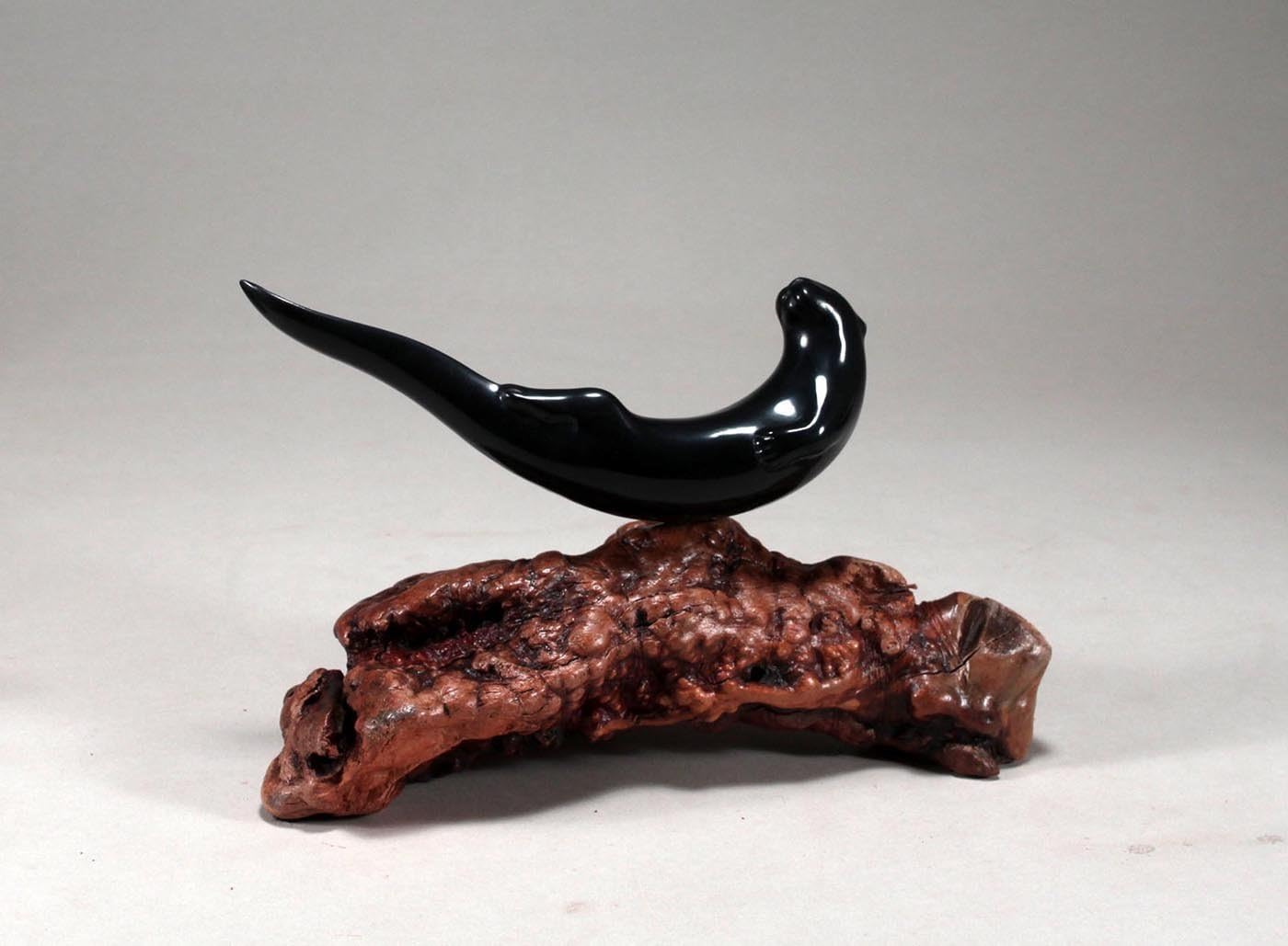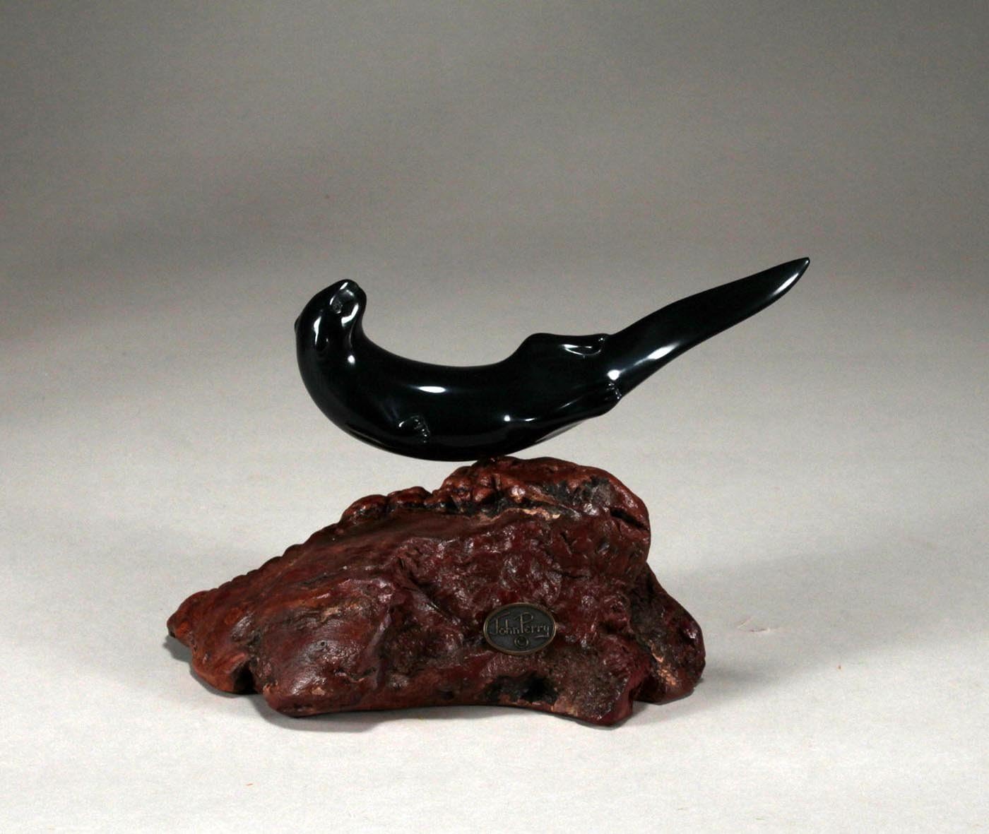 River Otters’ long tails make them beautifully elegant while swimming submerged. The Otter is about 6 inches long. Including the polished burlwood base this piece stands about 7 inches tall and 7 inches long. It is molded of our Ebonite resin and laboriously polished. PLEASE NOTE: the photos are of samples for illustration. Each burl is a piece of nature's art, so the one you will receive will be different but of similar size and comparable beauty. It is SIGNED and comes with a CERTIFICATE of AUTHENTICITY.