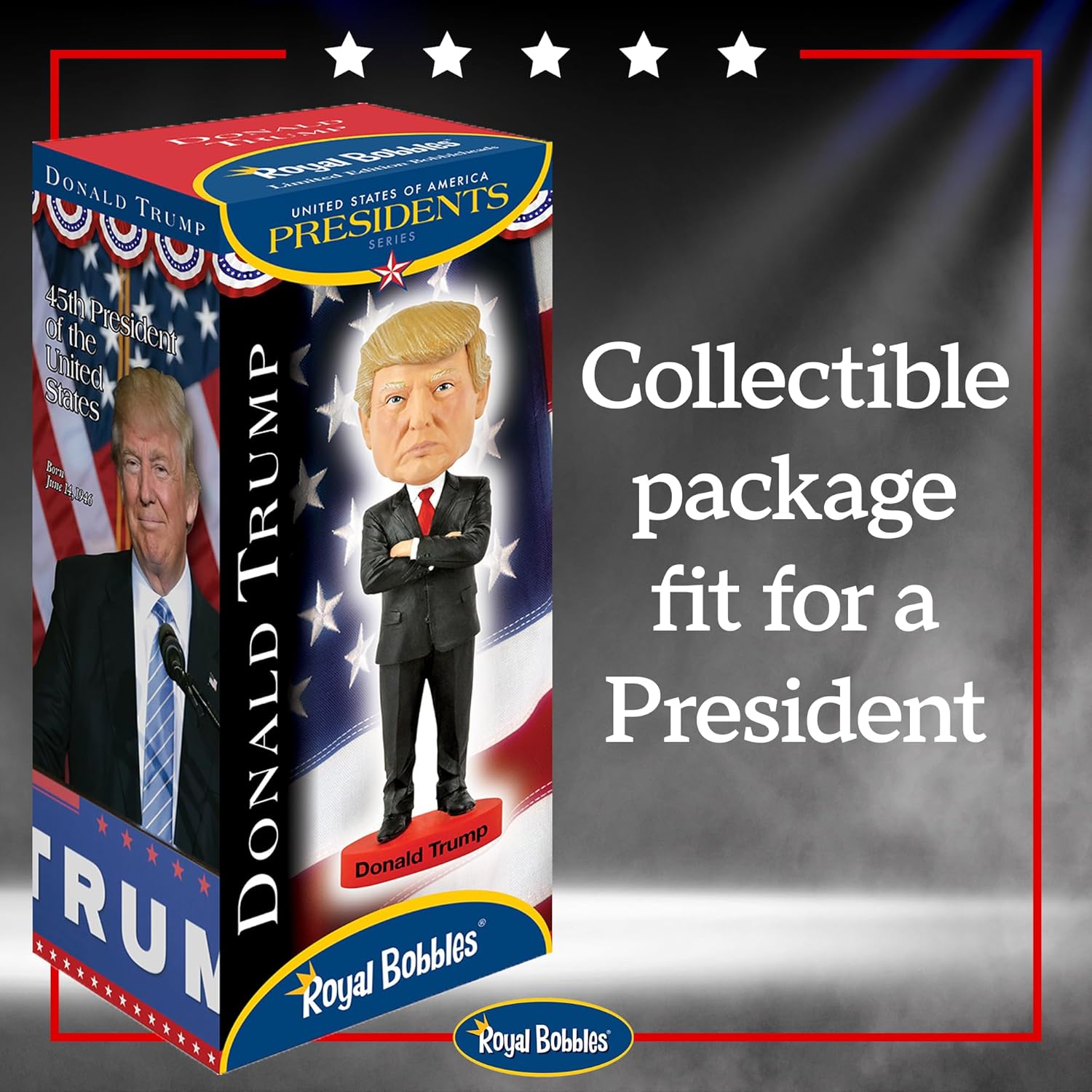 | Included Components | The Trumpster has an opinion on everything, but just give this Donald Trump Bobble Head a tap and he'll nod his approval with anything you say! This must-have for any fan of Donald measures over 8-inches tall. Made from ceramic. Ages 13 and up. |