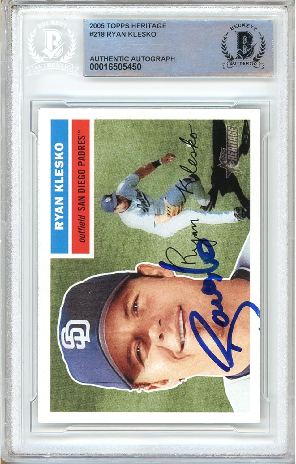 Add a classic Padres collectible to your collection with this Ryan Klesko Signed and Autographed 2005 Topps Heritage baseball trading card, professionally Trading Card Slabbed for strong protection and a clean, display-ready look. It’s a great fit for San Diego Padres fans and MLB collectors who want authenticated baseball memorabilia with premium presentation. This autograph card is authenticated and encapsulated by Beckett Authentication Services (BAS) in an encapsulated hard case slab that serves as the COA. For buyer confidence and easy verification, the authentication number shown in photos and verifiable in the Beckett database supports the authenticity of the signature. Whether you place it in a display case or showcase, or keep it secure in long-term storage, this certified and verified collectible is an easy upgrade for any sports memorabilia and autographed memorabilia lineup.