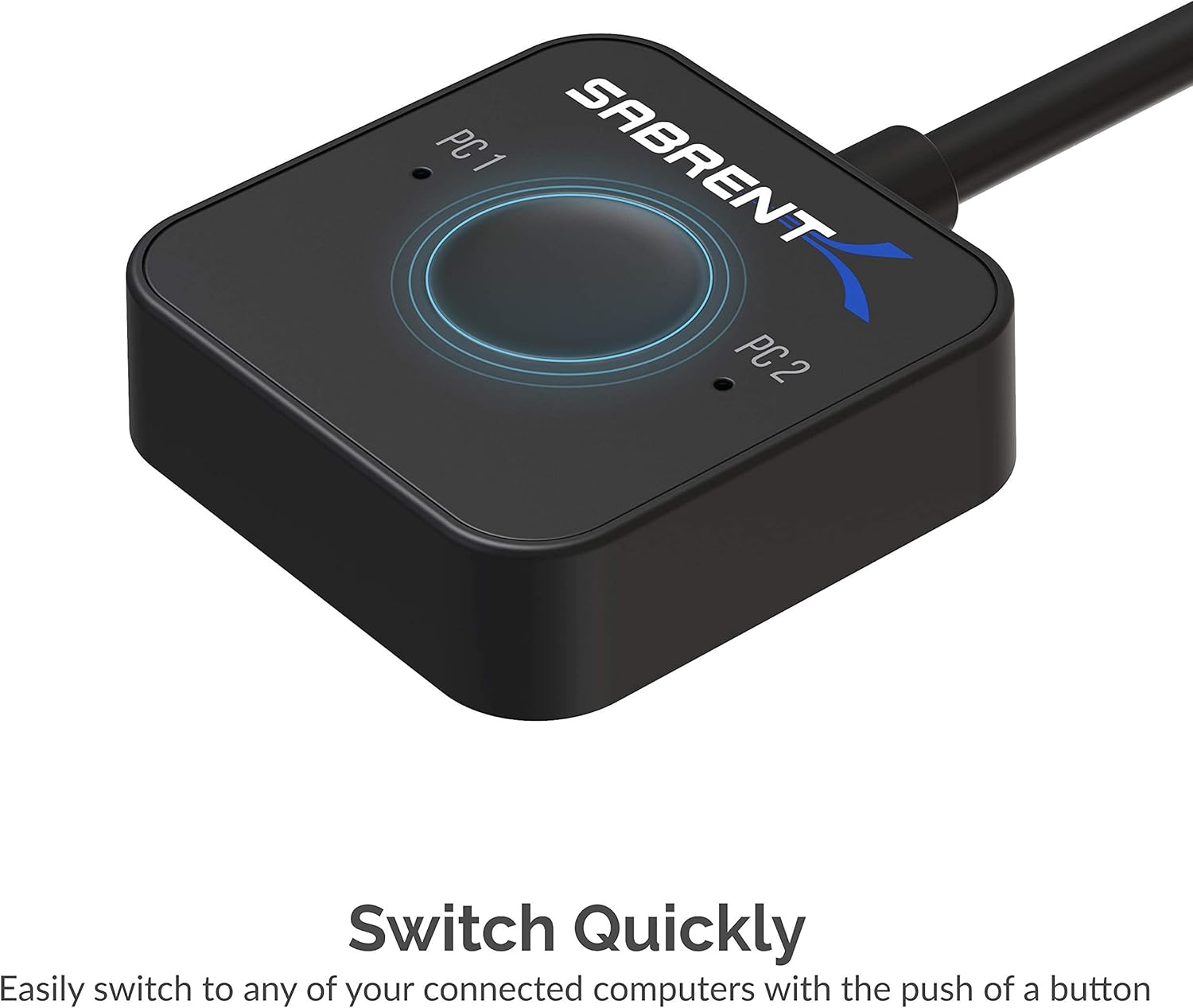 SABRENT 2 Port USB Type C KVM Switch with 60 Watt Power Delivery Option + USB 3.1 (Type A) to SSD / 2.5 Inch SATA Hard Drive Adapter. The SABRENT 2 Port USB Type C KVM Switch with 60 Watt Power Delivery (USB KCPD) allows you to control two computers using only 1 mouse, keyboard, and monitor! FEATURES Control two computers with only one mouse, keyboard, and monitor. Switch quickly between two PCs with the push of a button. Simultaneously charge two computers via Power Delivery (up to 60 watts per computer). USB Type C Alternate Mode to HDMI 2.0 output with resolution up to 4k@60Hz. Support for two USB Type C Power Delivery input connections. Fully compatible with Thunderbolt 3. Fully compatible with Power Delivery (PD 3.0) up to 60 watts at 5V, 9V, 15V, 20V. Take advantage of the lightening speed of USB 3.1 to quickly transfer files up to 10 Gbps! Connect any 2.5'' Serial ATA (SATA) / SSD or SATA II Hard Drive to your computer through an available USB 3.1 (Type A) port on your desktop or laptop. this Adapter is a perfect solution for data transfers or data backup!