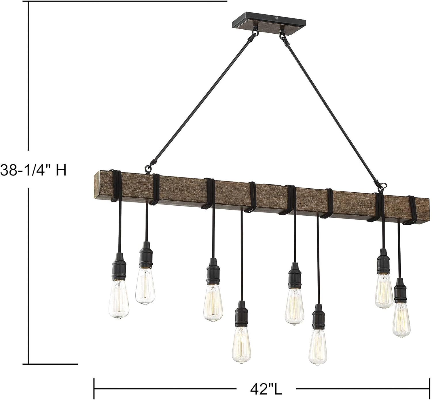 Simple, rustic style is yours with the unique Savoy House Burgess 8-light linear pendant. It features little more than bare bulbs suspended from cords wrapped around the bar, finished in Durango, but this minimal look makes a big impact! Linear pendant lights are ideal for use over rectangular dining room tables or kitchen islands, but you can also use them in living rooms, great rooms, over pool tables and in media rooms, too. Since the bulbs are exposed, try using stylized bulbs (not included) like tubular shape or Edison style for a different look! The Durango finish pairs nicely with black or bronze hardware, but also can mix with hardware in other finishes. Rustic, industrial and modern farmhouse style spaces are ideal choices for Burgess. When you choose a Savoy House lighting fixture, you can be certain you’ve selected a piece that will withstand the test of time.