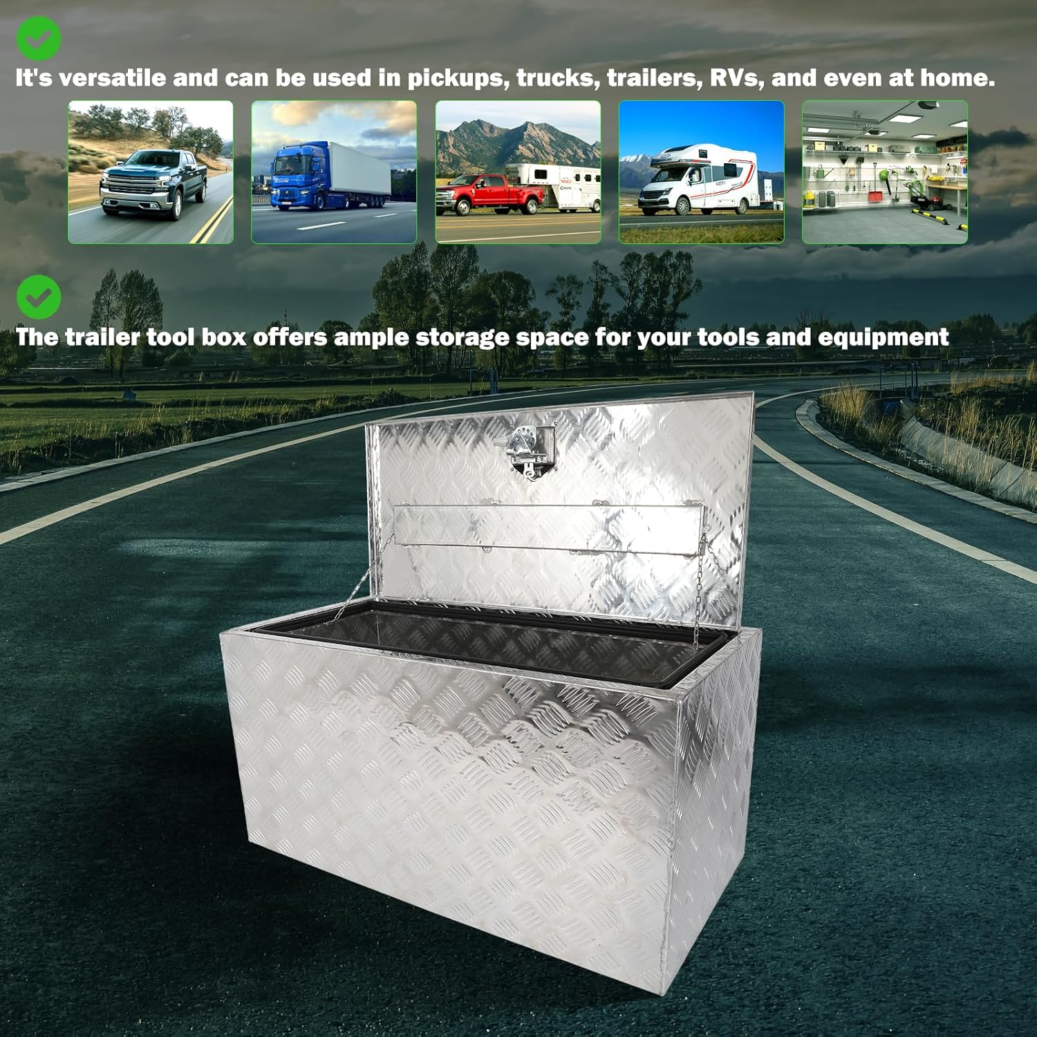 | Item Type Name | SCITOO 36inch Heavy Duty Storage Organizer Chest Aluminum With Key-Waterproof Rectangle With Two Chains -Silver -for Truck,Trailer,Pickup,RV 36"X18"X18" |