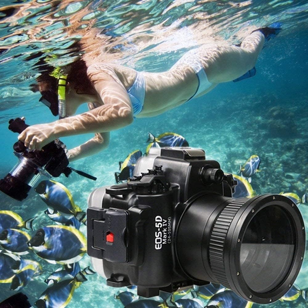 Compatible Camera: For Canon EOS 5D Mark IV (compatible with Mark III) With EF 24-105mm f/4L LensPRODUCT SPEC: Waterproof depth: 40M (130ft) Waterproof element: O-ring seal (EPDM rubber) Operation temperature: 0 - 40โ Main material: PC, Optical glass, Stainless steel Dimension: 234mm(L)*210mm(W)*180mm(H) Weight: 1715gFEATURES: Single sync cable system Built-in water leakage sensor Port changeablePACKING LIST: 1x SeaFrogs Housing for For Canon EOS 5D Mark IV/ Mark III 1x Hand strap 1x Shoulder strap 1x Extra O-ring 1x User manual 1x Clean Cloth