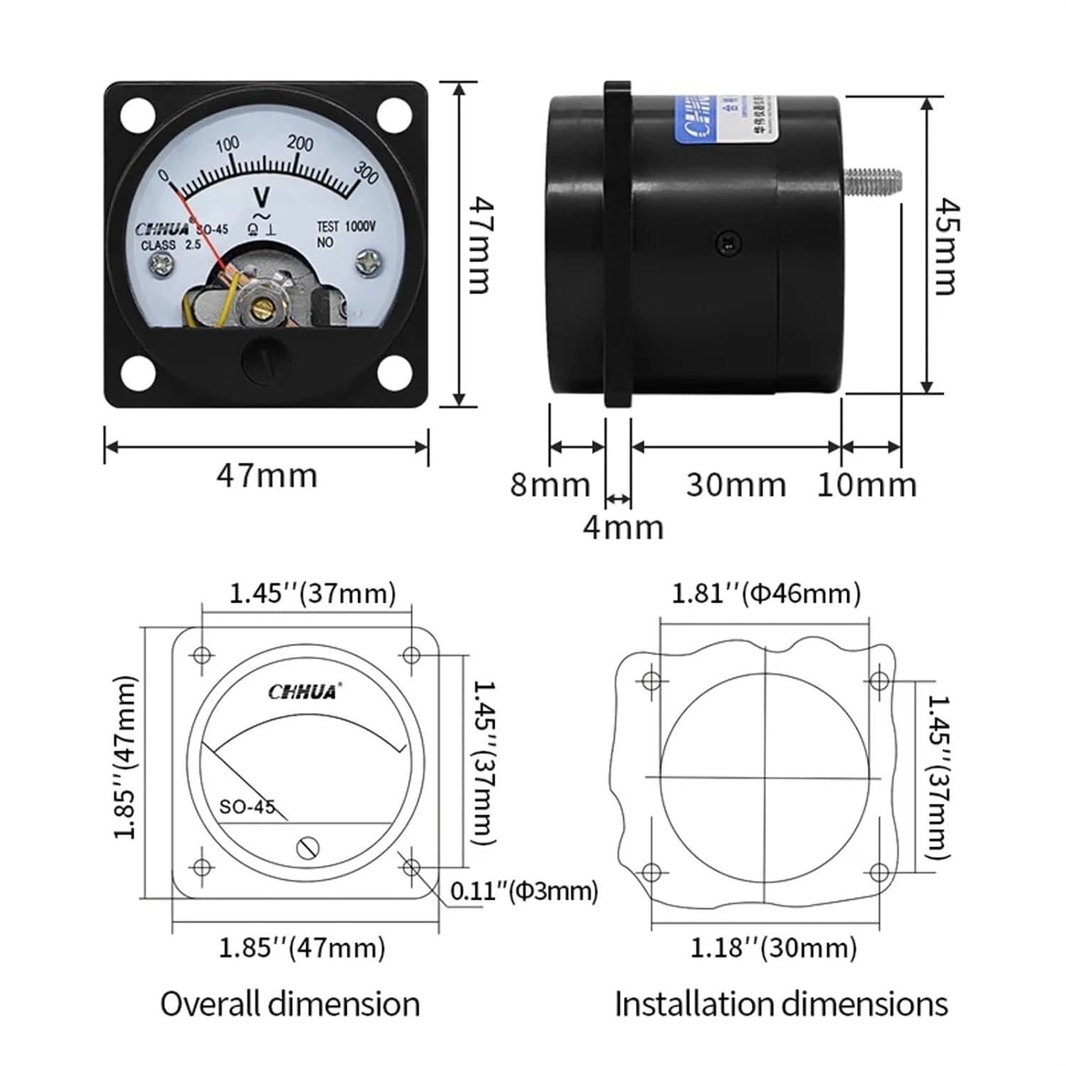 AmmetersSO-45 AC Analog Voltmeter 5V 10V 15V 20V 30V 50V 100V 150V 200V 250V 300V 400V 450V 500V 600V Voltage Meter