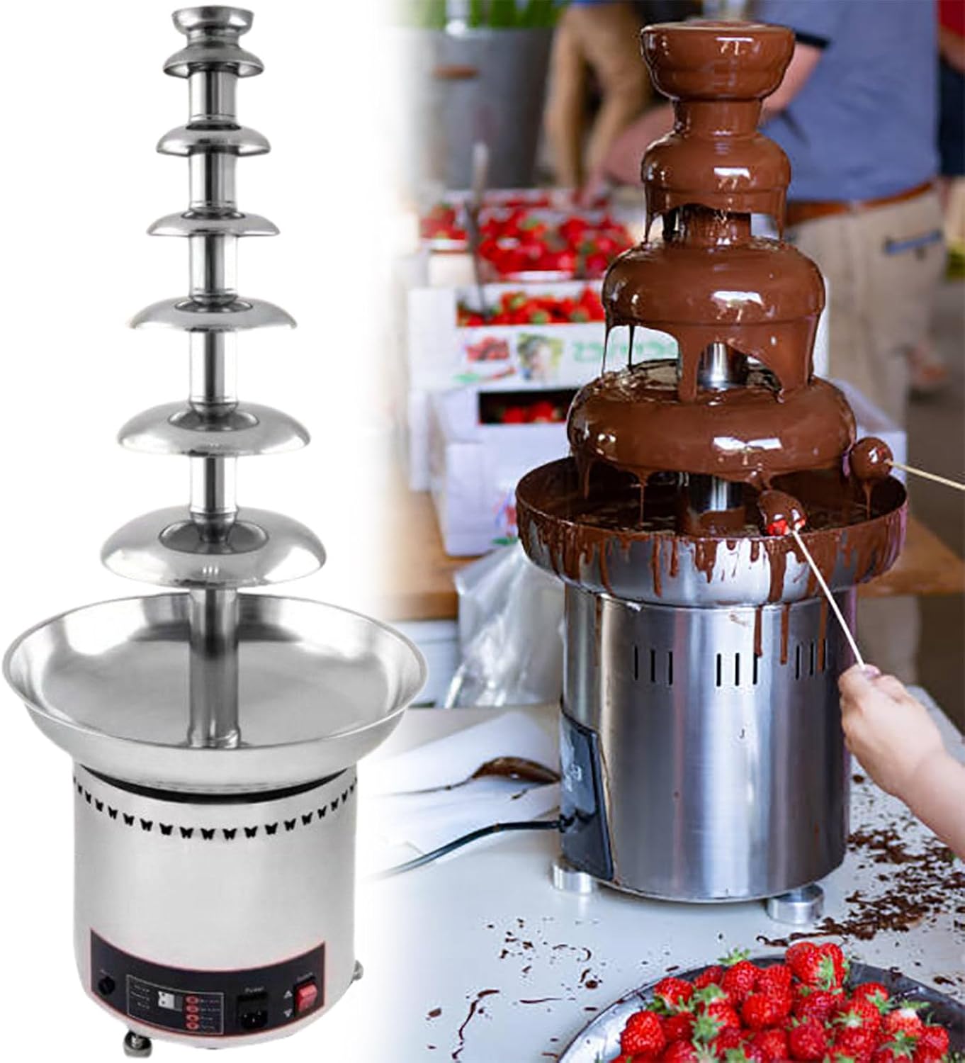 Dual enjoyment of vision and taste: The dynamic chocolate waterfall and aroma can attract customers' attention, especially suitable for couples and families, and enhance the fun of dining. Interactive social communication: Customers can DIY dip ingredients (fruits, desserts, etc.), take photos and share them on social media, bringing frees exposure to the restaurant. High-end scene sense: Suitable for weddings, banquets, and festivals, to enhance the level of activities and meet customers' needs for a sense of ceremony. High value-added product premium: Chocolate/sesame sauce and other dipping sauces can be paired with affordable ingredients (such as marshmallows and cookies) to increase the price of a single product. Extend stay time: Fun experience encourages customers to stay longer, indirectly stimulating other consumption (such as drinks and desserts). Multi-functional application scenarios: In addition to desserts, it can also be used for hot pot sesame sauce, cheese spray, etc., to expand the diversity of the menu. Energy-saving, and long-term cost control Low energy consumption design: Commercial-grade motors and heating take into account efficiency and energy saving, suitable for long-term operat. Long-life material: 304 stainless steel and leak-proof structure reduce failure rate and reduce maintenance and replacement costs. Automatic operat: constant temperature control and circulating flow design reduce manual intervention and avoid food waste or deterioration. Package includes: 1*Chocolate Fountain Machine