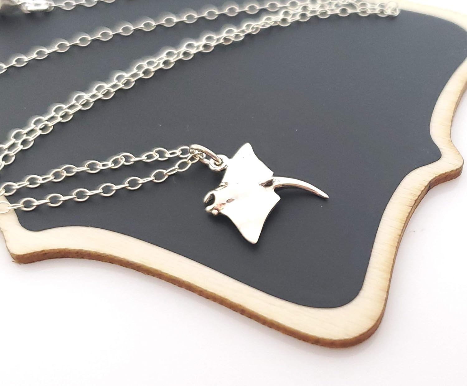 This dainty stingray necklace is handcrafted from solid .925 sterling silver and features an adorably detailed stingray charm with a smooth, polished finish. The charm hangs from an 18-inch sterling silver cable chain secured with a sturdy lobster clasp for comfortable everyday wear. Designed and handmade in the USA using high-quality materials, this ocean-inspired necklace makes a thoughtful gift for marine life lovers, beach enthusiasts, and anyone who appreciates minimalist, nature-inspired jewelry. Each necklace arrives gift-ready, making it perfect for birthdays, holidays, or just because.
