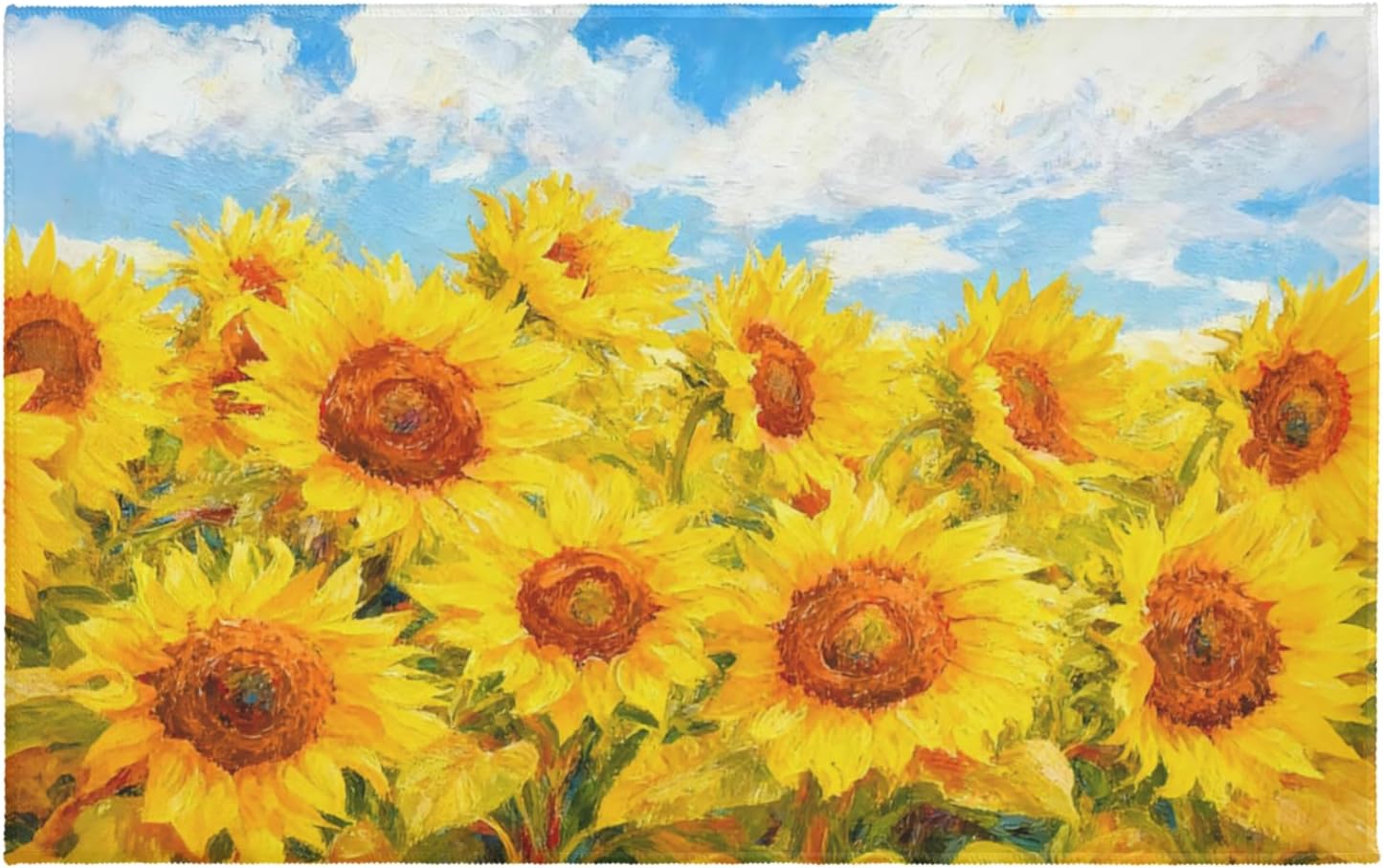 Our spring summer sunflower themed bath rug Elegantly crafted from premium microfiber which are soft and cozy enough to give your feet exceptional comfort.These spring summer sunflower bath rug have a unique yellow sunflower design. With the extra soft absorbent premium microfiber material, the douceur bath rugs can offer a cushy spot to dry off and keeping your room floors dry and clean. The TPR rubber material on the back is non-slip, which keeps the bathroom mat in the right place. Dimensions: The spring summer sunflower bath rug measures 20 x 32 inches, which is an ideal standard size for any bathroom. Vibrant colors. This spring summer sunflower bathroom rug is suitable for many occasions. It can be used in any bathroom, living room, deck, patio, porch, balcony, and entryway. Warm Tips: Do not place mat on wet surface. Make sure floors are dry underneath the rug to prevent the rug from slipping This bathroom floor mat is almost free of fiber shedding issues with the densely and firmly woven. Machine washable construction makes cleaning up a breeze. It is recommended to wash with cold water and mild detergent Due to the lighting and monitors, there are slight difference between the picture and the real item. Our spring summer sunflower bath rug is a work of art than a simple home decor item. We monitor every step of the process from design, printing quality, sewing and packing The spring summer sunflower bath mats not only add a touch of festivity to your space but also provide a soft, warm surface underfoot, making your daily routine even more comfortable