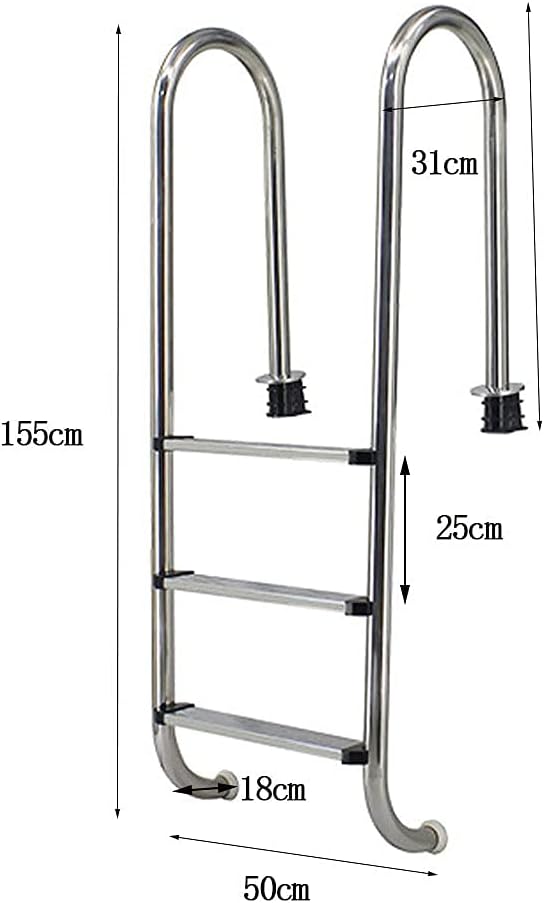 A pool ladder for your swimming pool! The ladder is made of high-quality stainless steel, which has good rust resistance and durability, thereby improving the overall robustness. It is also equipped with non-slip footsteps, handrails that can prevent slipping and bending, so that you can easily grab it when you enter and exit the swimming pool, so you can also ensure your safety. Moreover, the structure is stable and strong, it will provide you with strong support when standing, and can support 441lbs. Whether it is used in a personal swimming pool or a commercial gym, it will provide convenience to your guests and customers. specification Color: silver Material: 304 stainless steel and plastic Product size: 19.7 x 2.2 x61" (length x width x height) Net weight: 18 pounds
