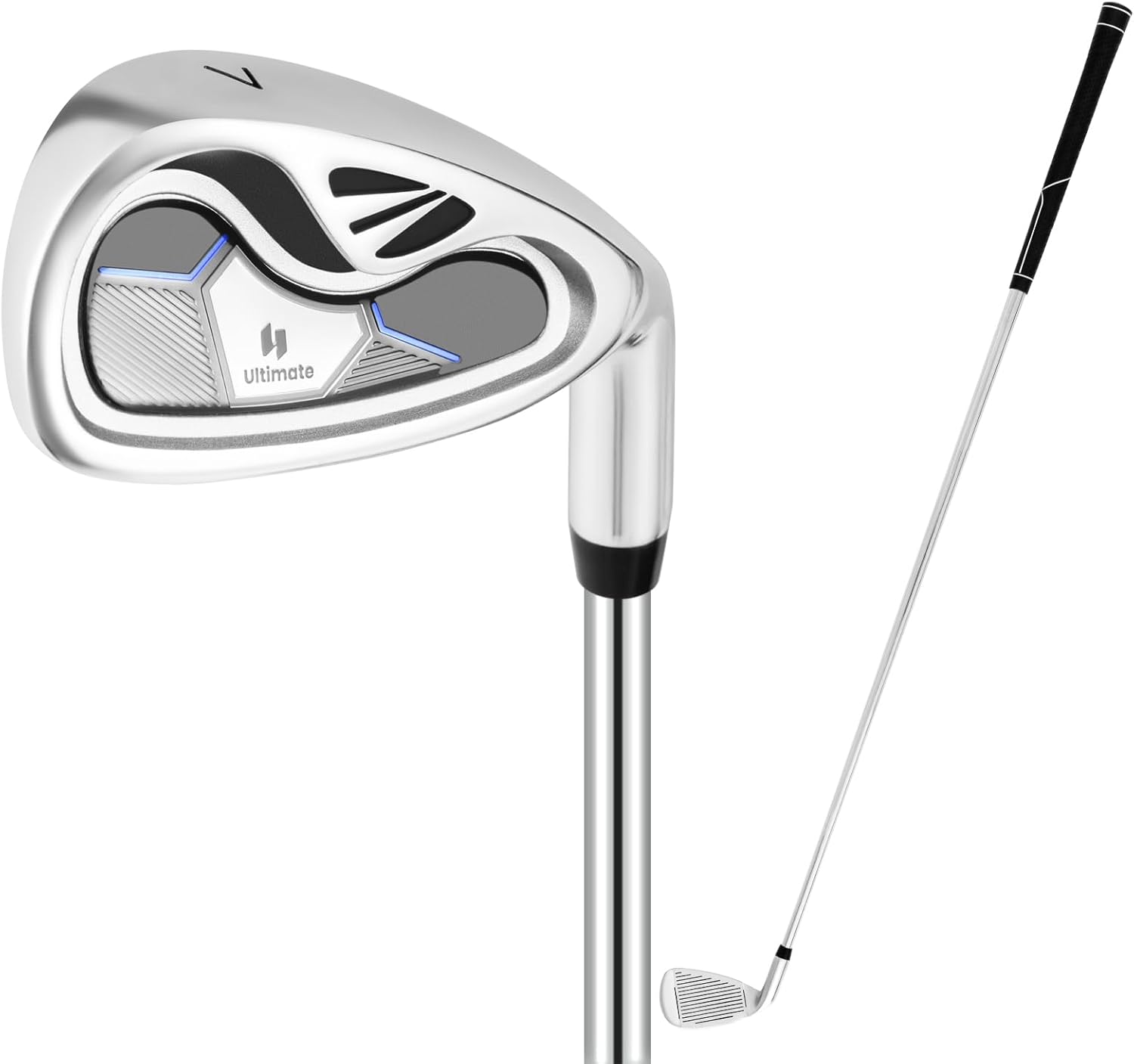 Description:This #7 iron will be a great gift for yourself or your loved ones!This #7 iron features an aluminum alloy head with a low center of gravity and wide striking surface for stability and forgiveness. The large sweet spot and deep grooves boost forgiveness and spin, leading to more consistent and accurate shots. The high-quality stainless steel shaft/graphite shaft offers improved feedback upon impact. The non-slip rubber grip helps enhance traction and precision during swings. This iron ensures a stable and consistent feel, making it an essential addition to your golfing arsenal.Features:Built with a lightweight aluminum club headLarge sweet spot for high forgiveness and enhanced accuracyStable and consistent shots with low center of gravity Improved spin with deep grooves on the striking surfaceReliable durability with a stainless steel shaftEquipped with a comfy non-slip rubber gripIncludes a matching head cover for protectionPerfect gift for golf loversSpecifications:Color: Black + SilverMaterial of Club Head: Aluminum AlloyMaterial of Shaft: Stainless SteelMaterial of Grip: RubberLie: 61.5°Loft: 34°Length: 37"Head Weight: 268 gGrip Weight: 50 gShaft Weight: 100 gAvailability: RHPackage includes:1 x #7 Iron1 x Head Cover