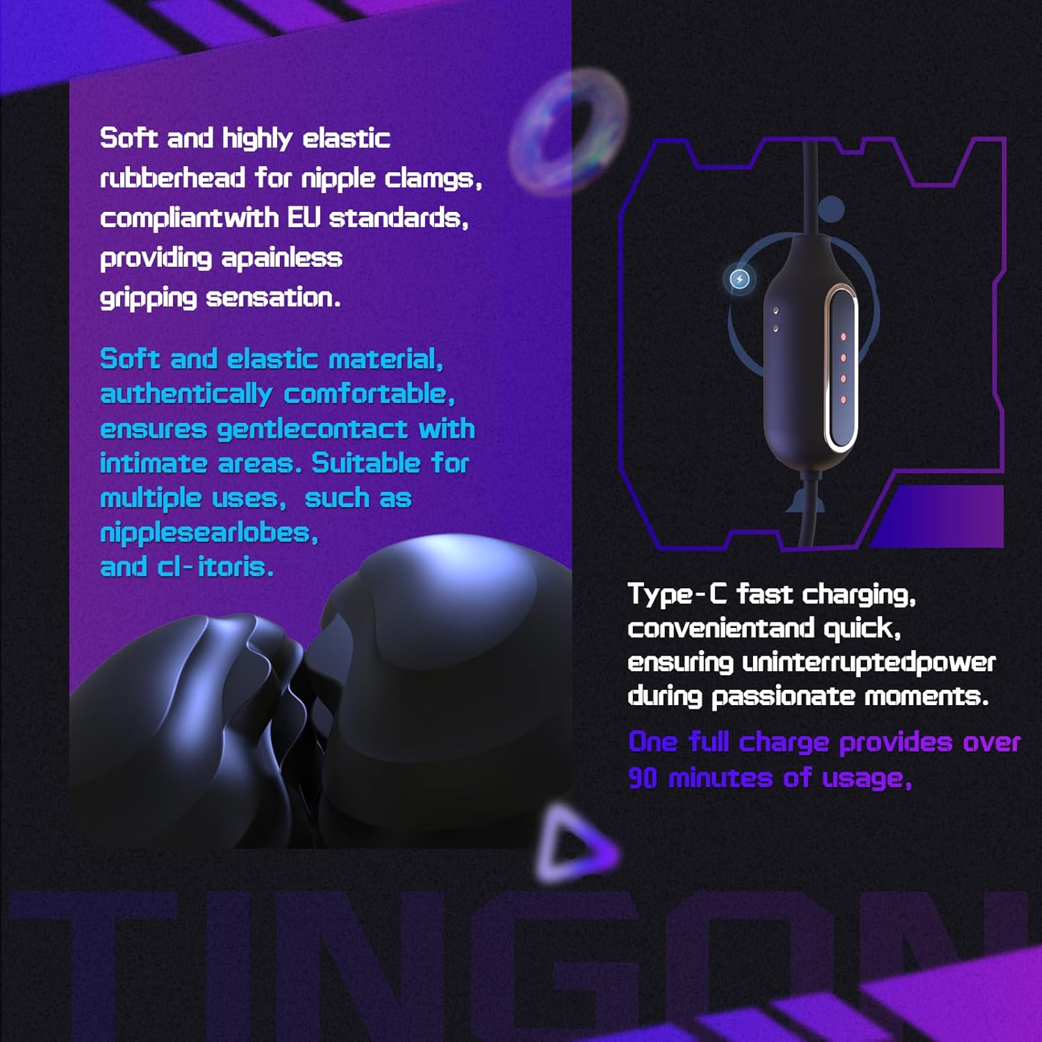 • Magnetic Fast Charging & Extended Play Vibrating Nipple Clamps - Never wait for pleasure, the 2-hour magnetic charge delivers 90+ minutes of continuous vibration. The low-energy motor maximizes efficiency, so your nipple sex toys stay ready for spontaneous adventures. Perfect for travel, parties, or romantic nights without battery anxiety.