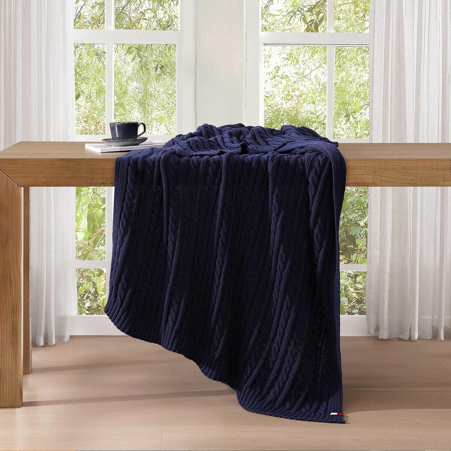 Add a layer of timeless comfort to your space with the Tommy Hilfiger cable knit throw. Crafted from 100% pure cotton, this ultra-soft throw features a classic cable knit design that brings texture, warmth, and a touch of heritage charm to any room. Whether draped over a sofa, chair, or the foot of your bed, this versatile throw delivers both style and coziness. Finished with the iconic Tommy Hilfiger flag logo label, it’s a subtle yet unmistakable nod to American style and craftsmanship. Perfect for cool nights or as a decorative accent, this cotton throw is as breathable as it is beautiful—making it a year-round essential for the modern home