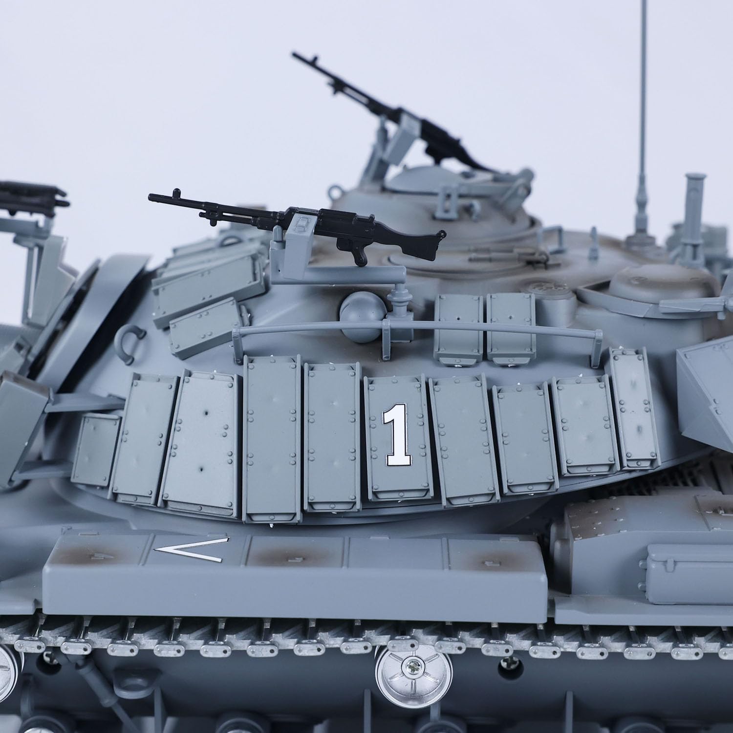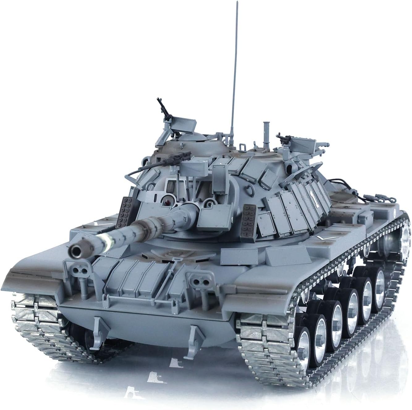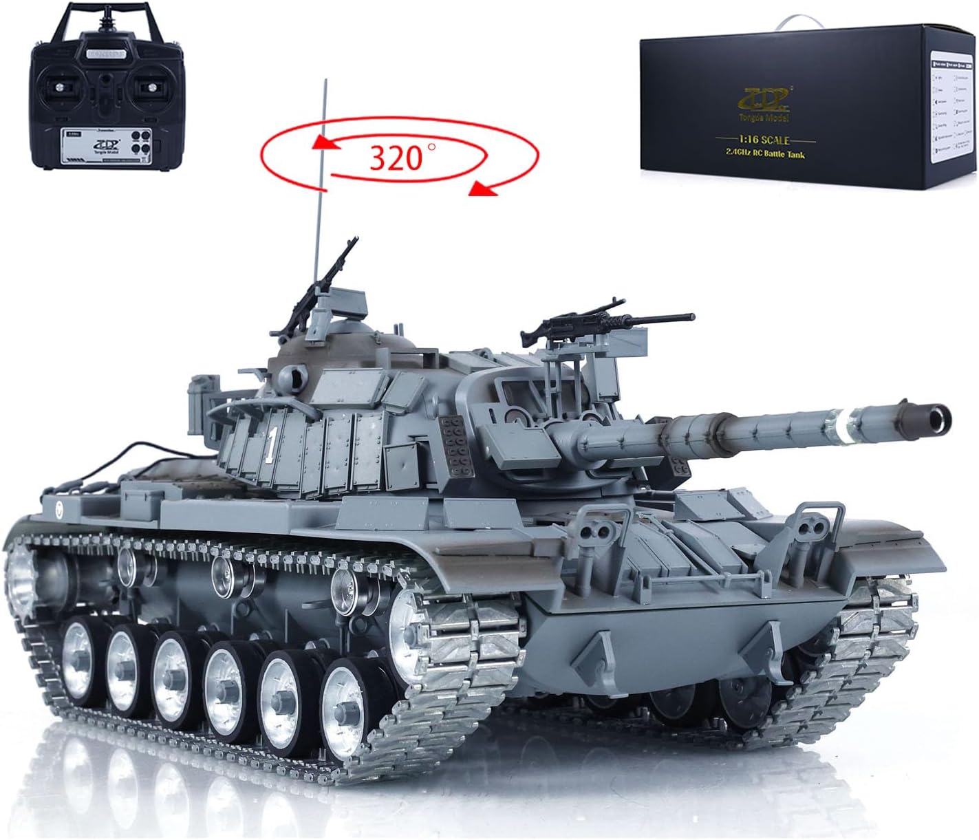 #Specification: Manufacturer: Tongde Model Item Condition: New, Painted and Assembled Scale: 1/16 Material: Plastic, Metal Tank Size: About 60*23*21cm ID: TD-M2022WU-M60W-ERA-320-PU-GY #The Package Includes: 1/16 RC Tank Model Mainboard Remote Controller Infrared Combating System BB Shooting System Smoke Unit Battery Light Sound USB Charging Cable #Metal Parts coming with the tank Metal Tracks Metal Driving Wheels Metal Idler Wheels Metal Road Wheels Metal Suspension Metal Return Rollers(if the real tank has) Metal Gearboxes