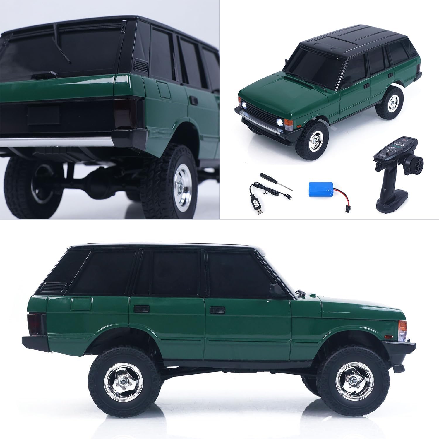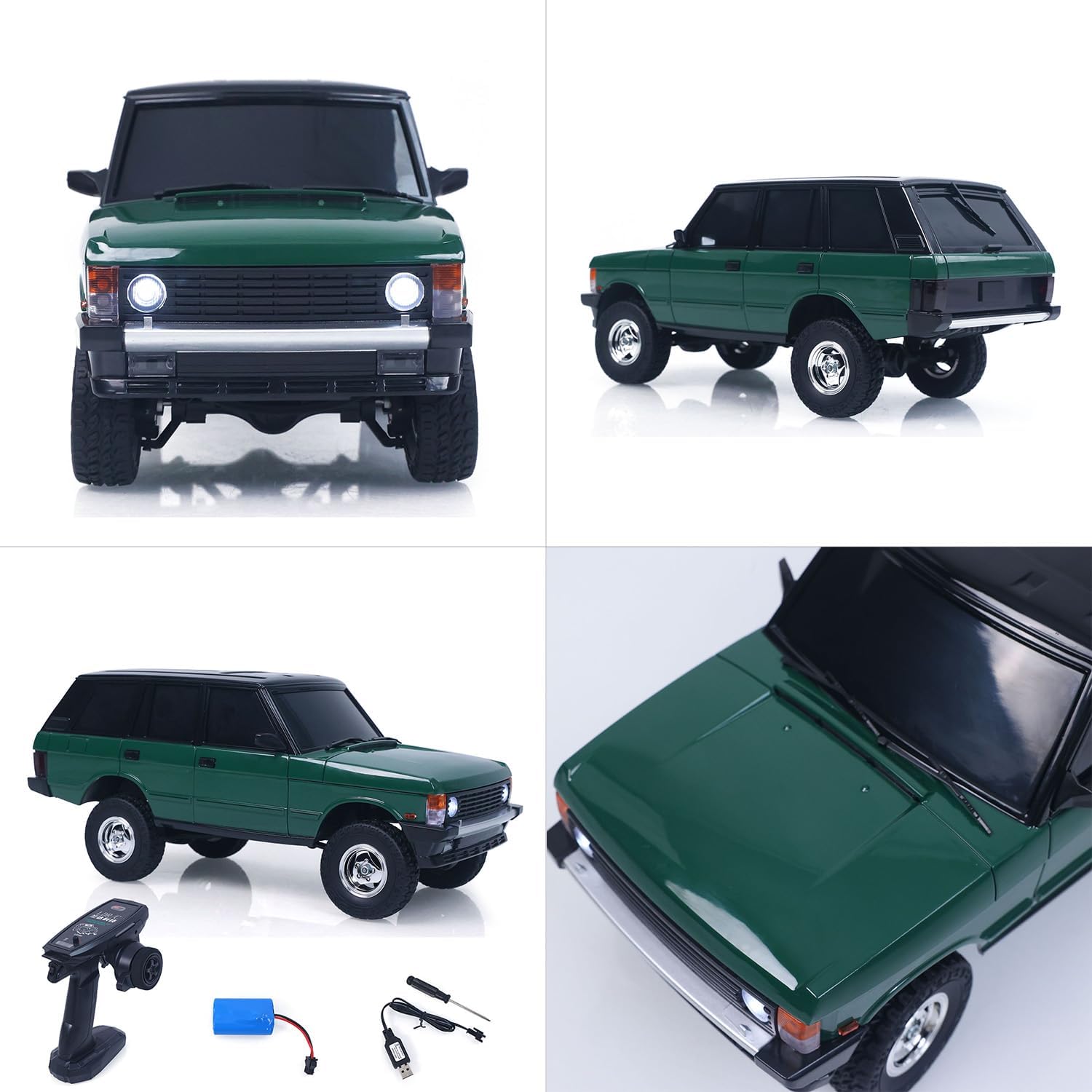 #LDRC LD18401 4*4 RC Climbing Car 1/18 2.4G Simulation Rock Crawler Car SUV Model Ready to Go 280 Brushed Motor ESC LED Light #Specification: Manufacturer: LDRC Item Condition: New,Assembled and Painted. Material: Plastic Scale: 1/18 Color: Green Length:27.2cm/10.7in Width: 12.7cm/5in Height: 12.2cm/4.8in Net Weight: 920g Motor: 280 Brush Motor ESC: 10A ESC Steering Servo: 9g Wheelbase: 155mm/6.1in Wheel Track: 110mm/4.3in Vehicle Battery: 7.4v 2S lithium battery (Included) Remote Controller Battery: 2x AA Battery (Not Included) Charger: USB Cable Speed: 8KM/H Remote control distance: 20 meters Runtime: About 30 minutes Charging Time: 120 minutes ID: LDRC-LD18401-RTR-GN #The Package Included: 1/18 RC Car Model Motor Servo ESC Remote Controller and Receiver Vehicle Battery USB Charging Cable #The Package Does Not Include: Light System Sound System Remote Controller Battery
