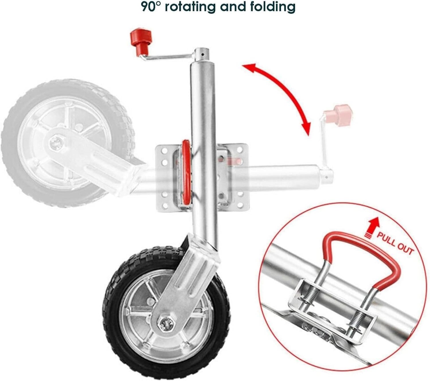 【Product Description: Removable and swivel trailer roller, fine galvanized finish, 10" heavy iron axle wheel includes all necessary mounting hardware for 10cm*11.2cm trailer frame, trailer jack is designed for boats and public trailers 【Basic Parameters: Product Name: Trailer jack/Hand crank guide wheel jack/Trailer accessories/fixed seat beach wheel jack Product weight: 13kg Material: Steel Capacity: 900kg Lift: 10" Lift height: 9.4" Surface treatment: galvanized Accessories: Free 10cm practical length bolts and fixing plate Wide range of uses: trailer support wheels, foldable design, convenient for driving and parking, widely used to support various boat trailers, yacht trailers, RV campers. 【Product package: 1* Swivel trailer jack 【Customer service: 1. Thank you for visiting our store. We hope there is always a trailer jack wheel that suits you, and we will help you before, during and after your purchase. 2. We provide you with high-quality beach boat jacks and other wheel accessories in a variety of styles. If you have any questions, please contact us and we will get back to you within 24 hours. 【Your satisfaction is very important to us.