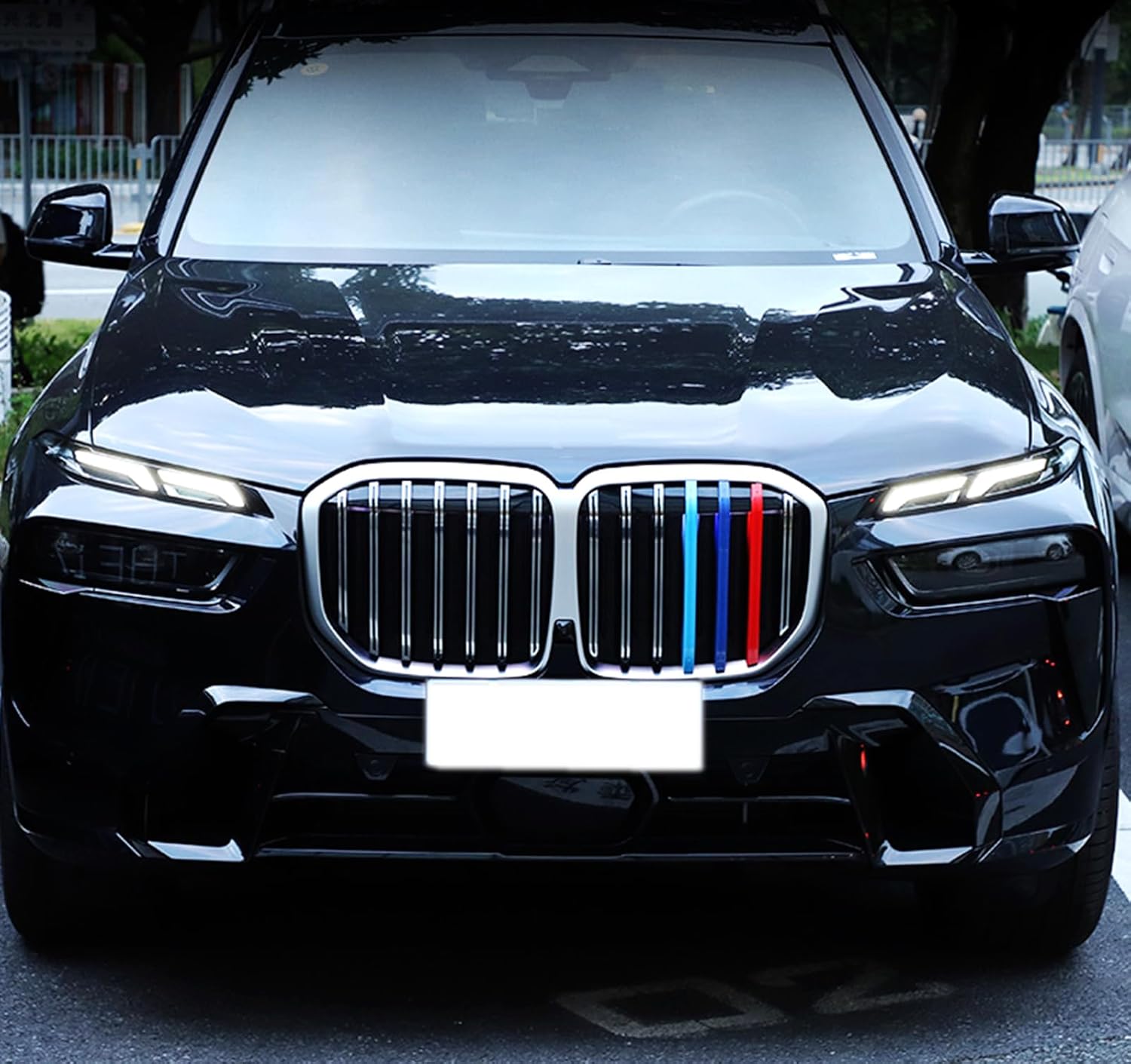 Goodream Tricolored Grille Insert Trims compatible with BMW 2023 2024 2025 2026 X7 G07 7-Beams Center Kidney Grill. Show off the sporty spirit of your car with this set of tricolor grille inserts! Features: The exact fit tricolored grille insert trims made to compatible with the 7-beam standard kidney grilles of BMW 2023-2026 X7 G07. Each grille trim is made of ABS plastic for a durable, Resistance to ultraviolet radiation,not easy to fade,long-lasting look like that of the legendary. Installation simply involves inserting each grille trim so that they clip onto the back of the beams. 1. Starting from the beam closest to your headlights, clip on the Mugello Red insert at the second grille beam. 2. Follow that up with the Daytona Violet into the third beam and the Avus Blue into the fourth beam. 3. After the simple clip-in installation, your Car will show its racing spirit with the legendary tricolors that stand for German engineering's best in performance! Please note that this product will only apply to BMW 2023-2026 X7 G07 with 7-Beams standard kidney grilles. Make sure your car has 7 beams on each side of its grille before purchasing this product.