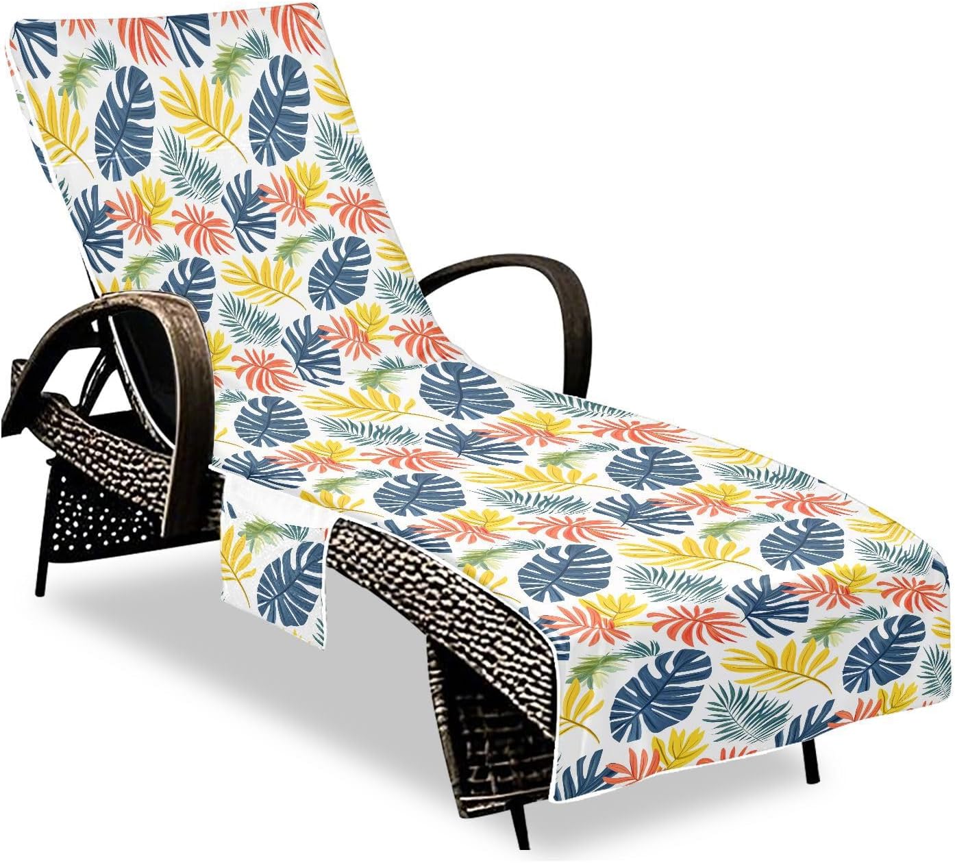 Size: With a size of about 85 x 30 inches/ 216 x 76.2 cm, large enough to cover most beach chairs, giving you an enjoyable sunbathing experience.Soft Material: This Chaise Lounge Cover is made of soft and absorbent microfiber and terry material. Offering next-to-skin comfort without sticky. Your chair is never too hot.Windproof Feature: This Chaise Lounge Cushion Covers with a deep 11'' top pocket that fits over most sun chairs, and it has four retractable fixing straps secured to chaise leg, helps it stay in place when you are trying to enjoy in the sun.Three Side Pockets: Features built-in storage pockets to keep your essentials organized and within easy reach while relaxing.Foldable Design: Our Chaise Lounge Cushion Covers are designed to be folded, so you can fold them into bags and carry them, very convenient. Lightweight construction makes it easy to carry and perfect for travel and outdoor activities.