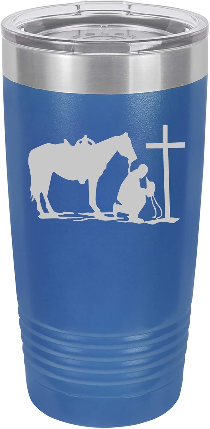 Tumbler Stainless Steel Vacuum Insulated Travel Mug Cowboy Praying Cross Horse