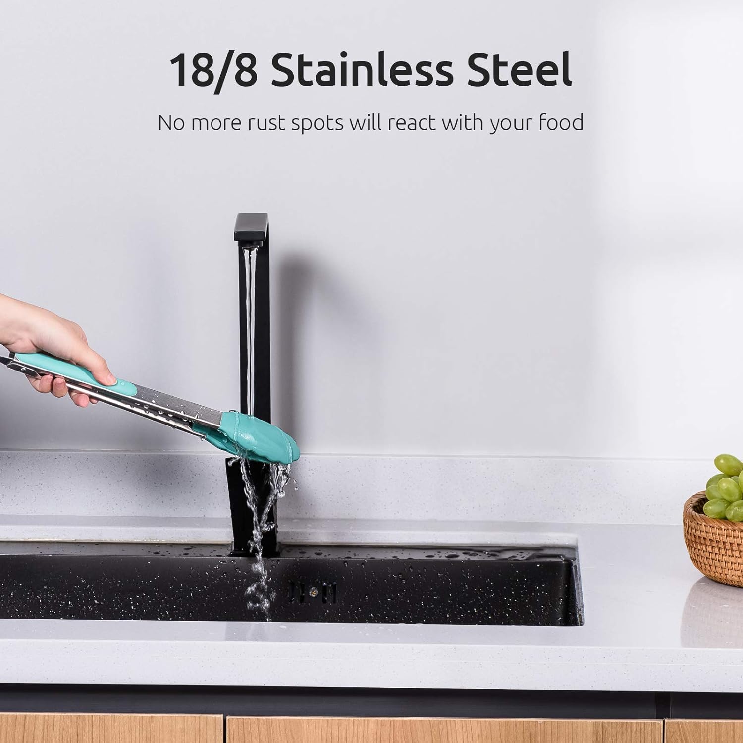U-Taste Narrow Square Measuring Spoons Our slim and trim design with its rectangular shape and long handle, fits neatly into most spice containers, saving you time and preventing messes. The long & narrow handles also give you better reach into tall containers, so you can scoop ingredients with ease. Our spoons have a smooth edge and no burrs, ensuring a comfortable, safe grip with every use. Our engraved measurements are built to last—permanently etched into the metal. You'll always be able to clearly see both metric and US measurements. Built to Last and Rust-Free Our measuring scoop set is made from high-quality 18/8 stainless steel, so it's durable, rust-resistant, and easy to maintain. This ensures your spoons won't add any metallic taste to your food. Accurate Measurements Every Time This spoons set comes with a leveling tool—perfect for scraping off excess ingredients for exact measurements. Whether you're working with wet or dry ingredients, you'll get accurate results without the guesswork.U-Taste Silicone Kitchen Tong 18/8 stainless steel handle coated with Food Gradesilicone. No more rust spots, weird smell, or deformation. Non-stick Food Gradesilicone covers offer a comfortable, non-slip, and handy grip. Smooth locking feature. U-Taste has added gaskets into the lock to achieve a smooth lock and unlock process. With more and thickened springs, they have nice spring pressure. Not too tight and not flimsy loose. 600℉ high heat resistant silicone tips. U-Taste cooking tongs can handle cooking tasks like grasping spaghetti, turning pieces of chicken when browning, or picking up hot stuff from air fryer, and still have no signs of melting. Dishwasher safe and easy storage. The lock feature help to keep them compact in the drawer. Ring on top for hanging.