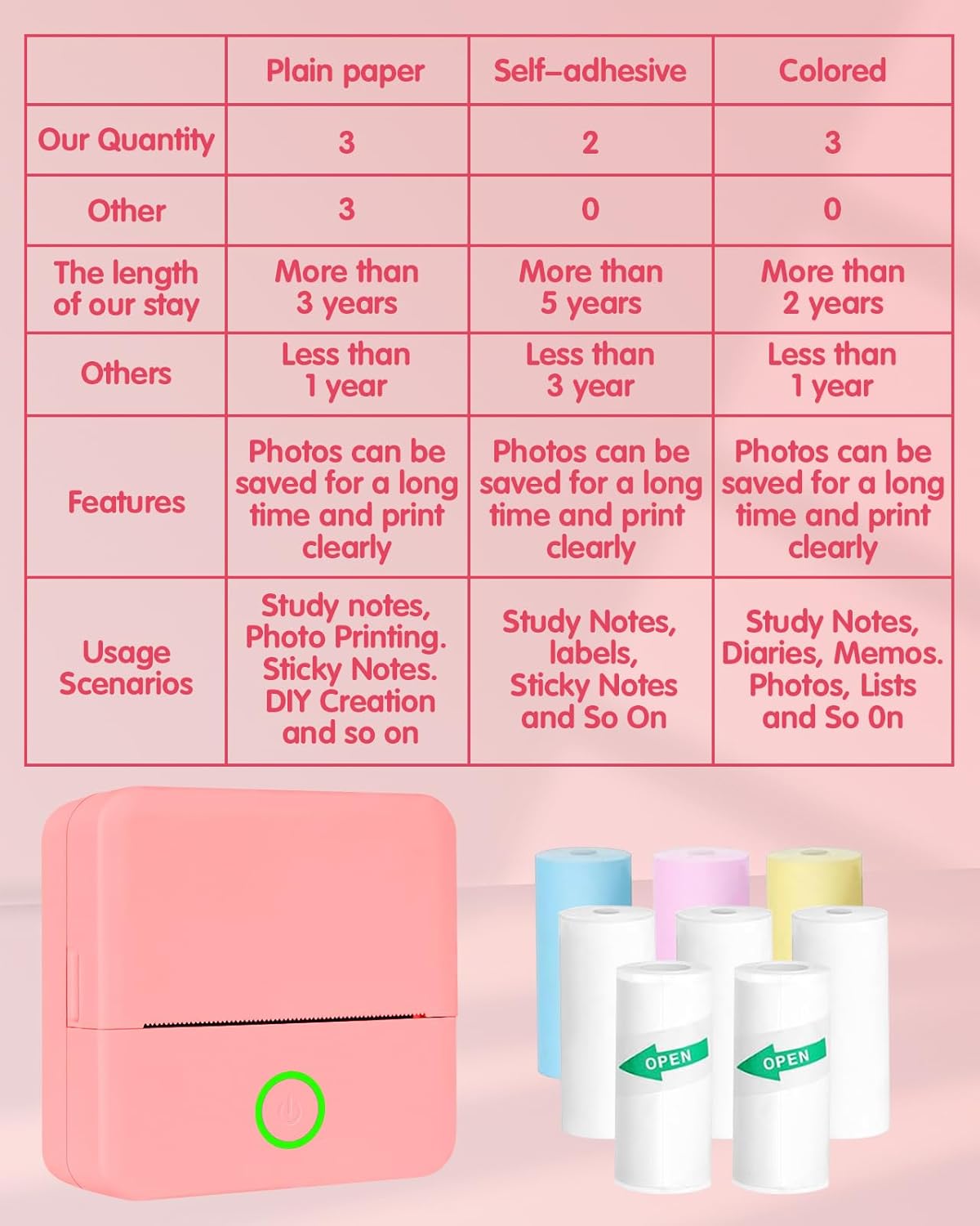 | Specific Uses For Product | Mini Thermal Printer for Photo DIY Anatomy Flashcards, Journal, Photos, Notes, Kids Gift,Study Notes, Memo, List, Work Plan |