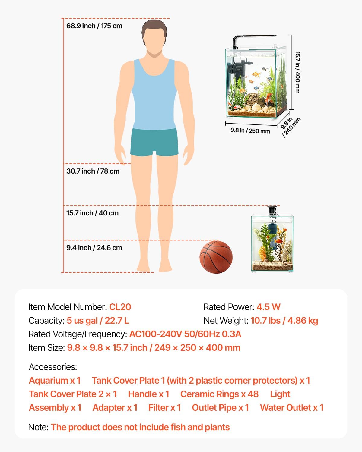 | Item Type Name | 5 Gallon Square Ultra-Clear Glass Starter Smart Tank Adjustable 3 Color Lighting, Self Cleaning System Fishbowl for Freshwater & Saltwater Fish Home, Office, or Pet Use |