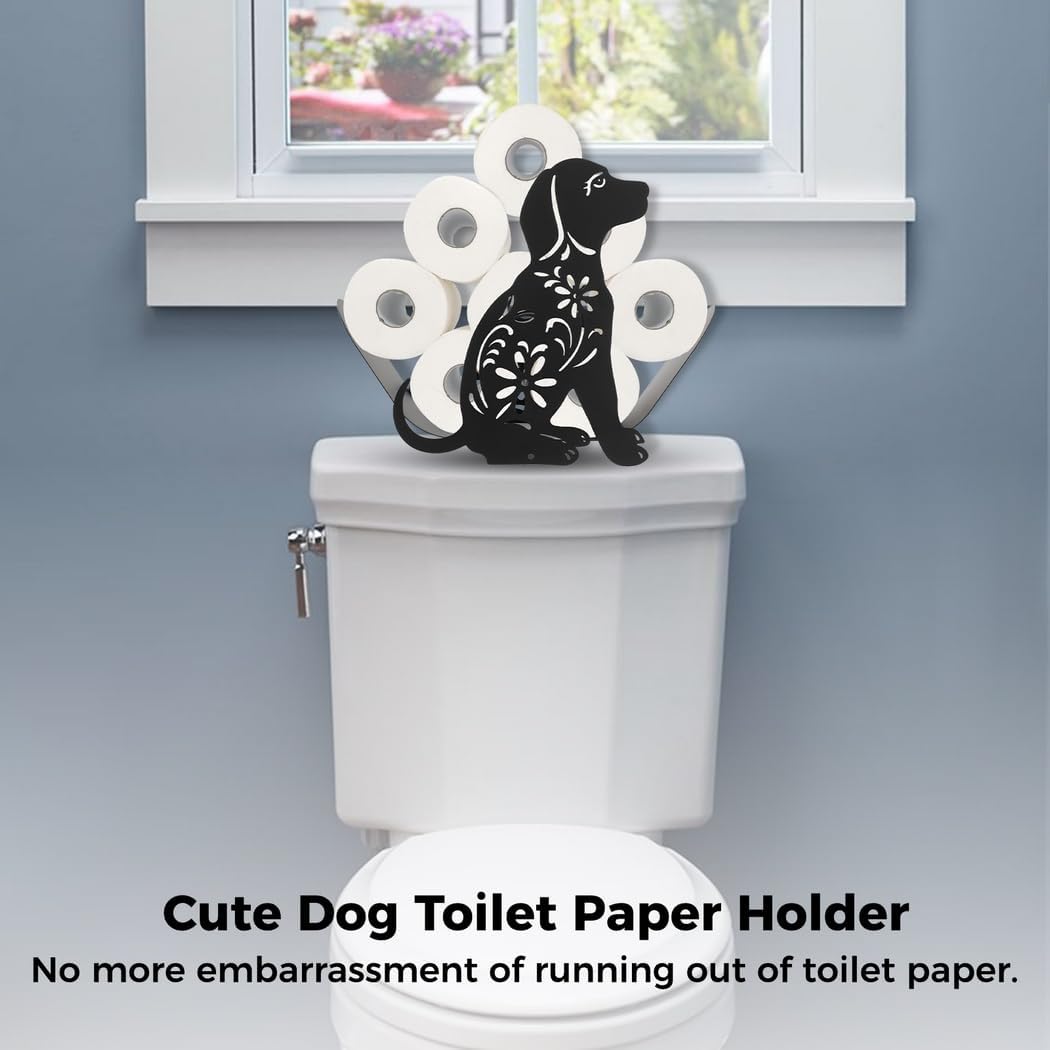 Waterproof Metal Dog Cute Organizer, Toilet Storage Holder Floor Vanity, Bathroom Dog Paper Tank for On Toilet Metal Turns, Roll Toilet 8 Roll On Per Holder Toilet Decor
