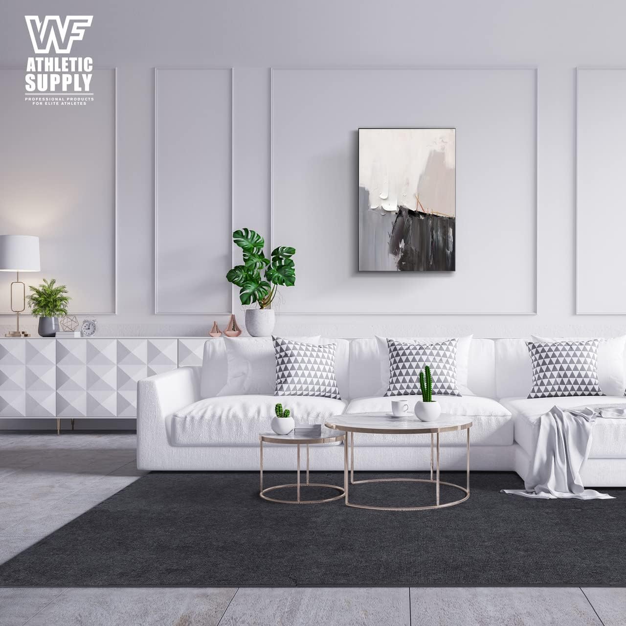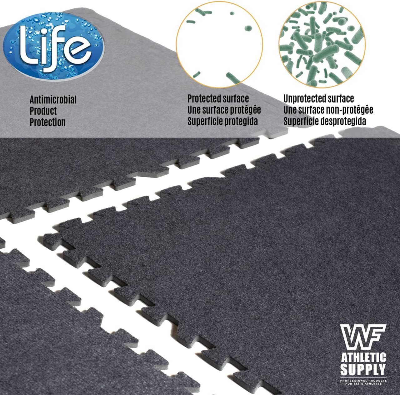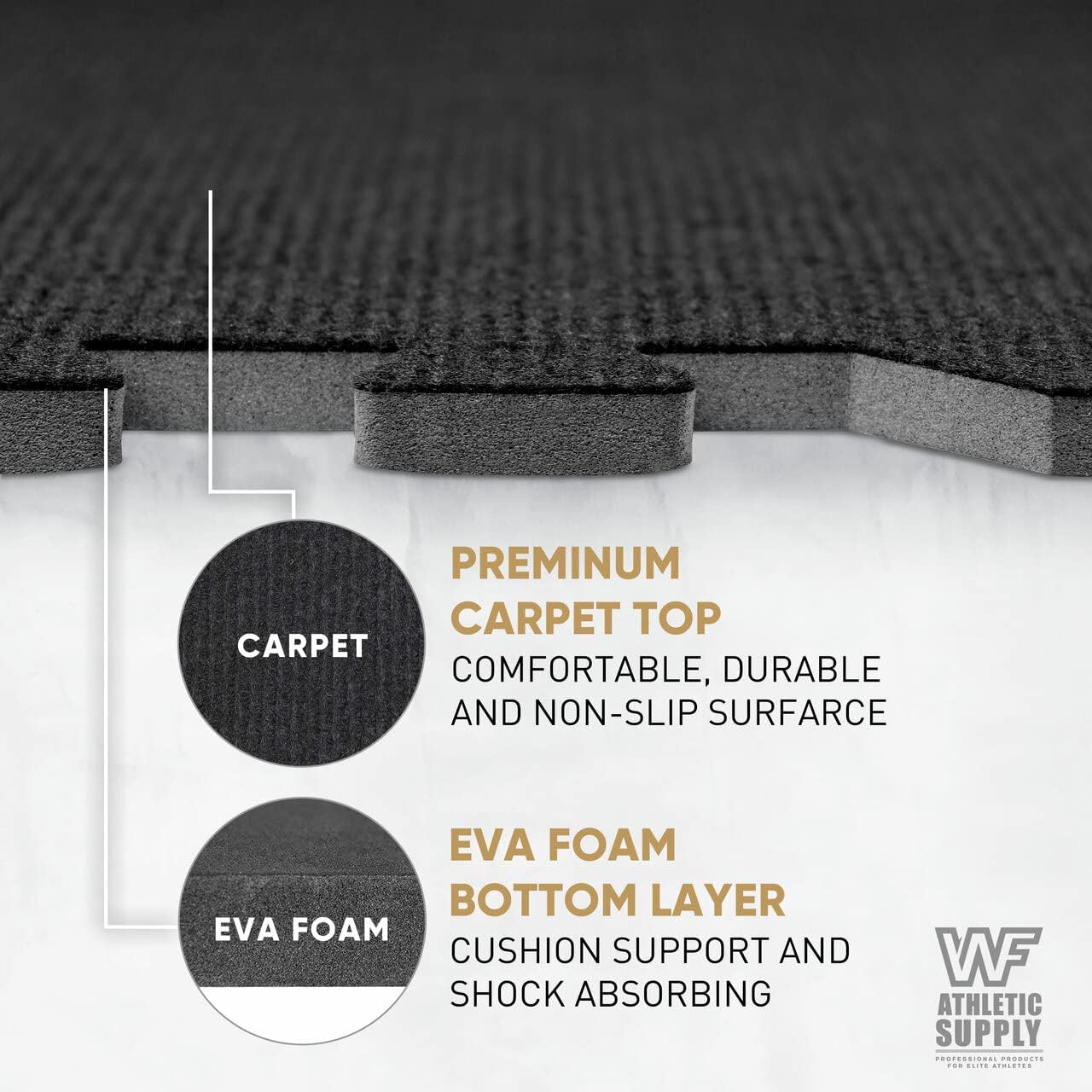 WF Athletic Supply Carpet Top EVA Foam Floor Tiles, Black Carpet Texture Surface Puzzle Interlocking Mats for Home Gym, Kids Room & Living Room; 24-inch x 24-inch x 12-mm per Tile