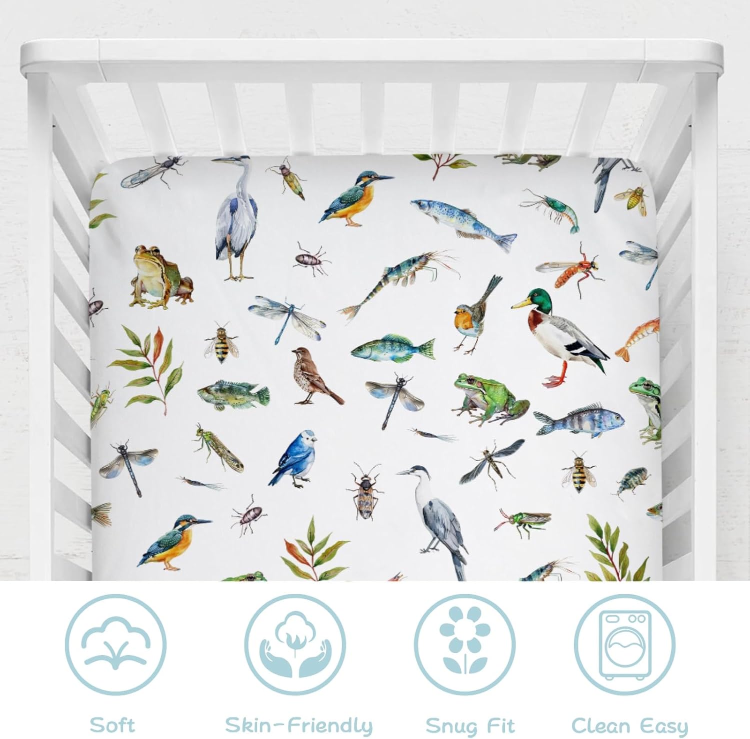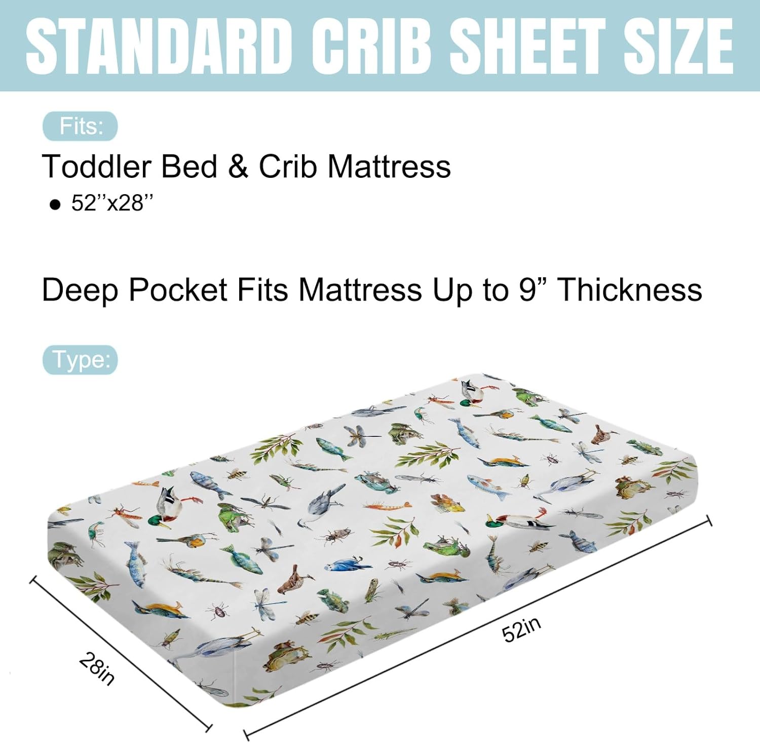 With a variety of adorable and trendy patterns and colors, our unique crib sheets add a of style and cuteness to your baby's nursery. The baby crib sheets are made of silky soft fiber, which is soft, comfortable, lightweight, breathable, stretchy and durable fabric. The size of crib sheets is 28''x52'', suitable for standard cribs and infant mattresses. With elastic band surrounded can fit your mattress tightly, not loose and flat, tight elastic band, double reinforcement, keep the crib sheet in place. It can be used as baby bed sheet, crib mattress sheet, toddler sheet, nursery bedding sheet and perfect for sleeping, snuggling and tummy time. It would create a tidy, unified and stylish look. Besides, the sheets can also be used on a dog bed and car-seat. Suitable for all seasons, providing maximum comfort during and time. Can be folded, easy to carry and use, perfect for travel, vacation, indoor, outdoor use. It is a must-have modern baby essentials for newborns, infants, and toddlers. Hand wash under 45˚C warm water. Machine wash by gentle cycle. Do not bleach and use other detergent. Do not soak for a long time. No dry cleaning.