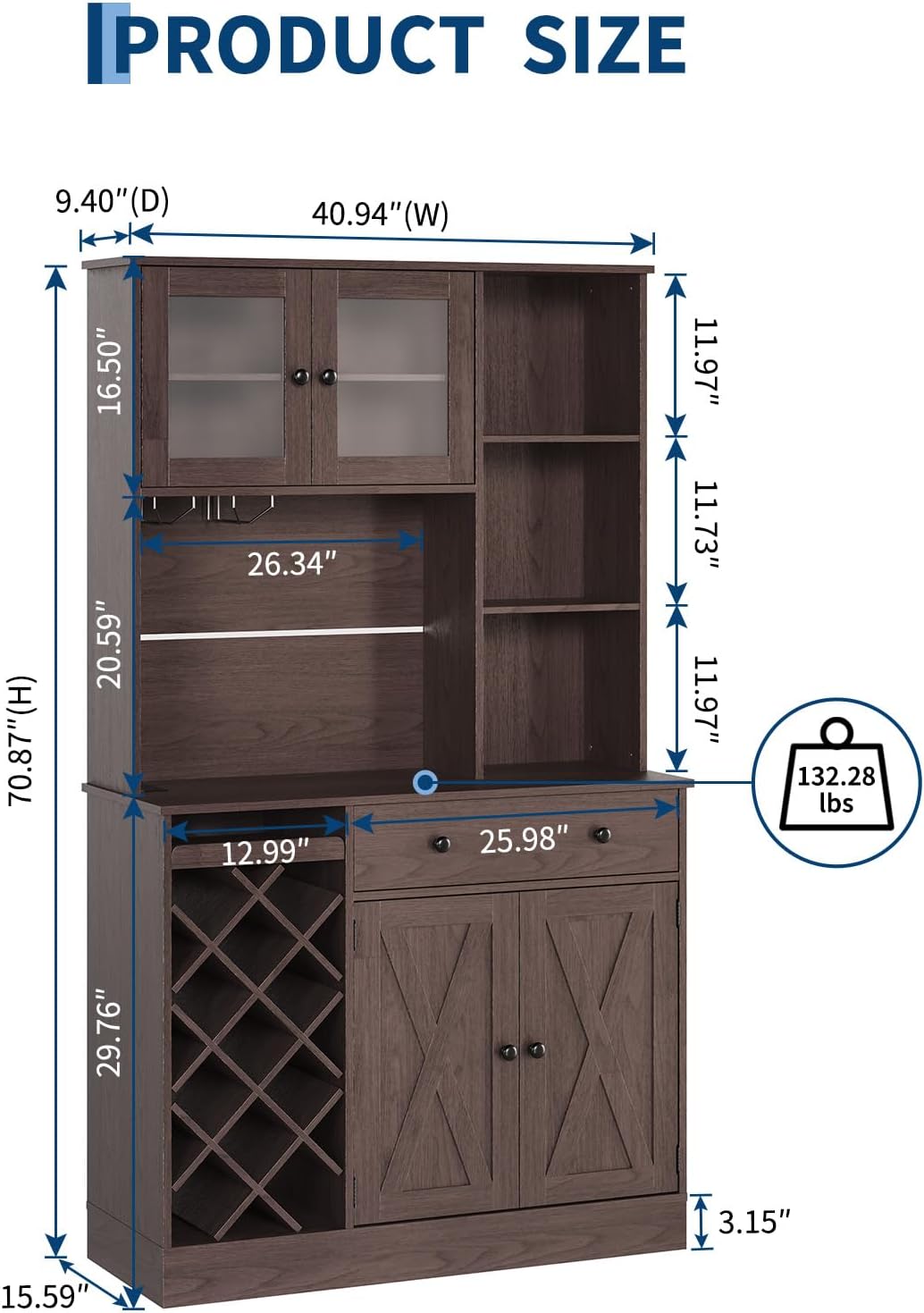 | Size | 9.4"D x 40.94"W x 70.87"H |