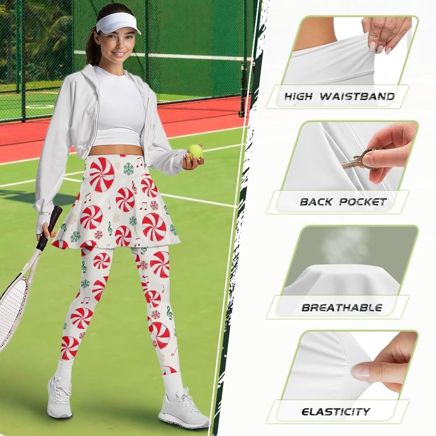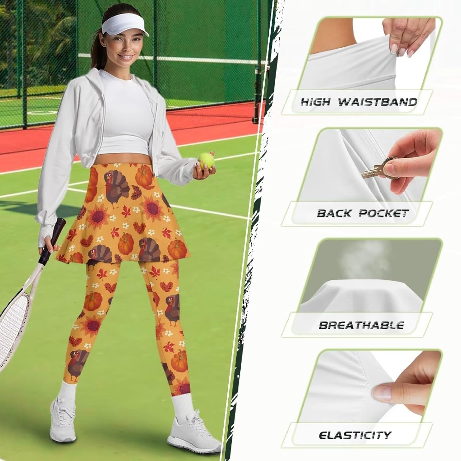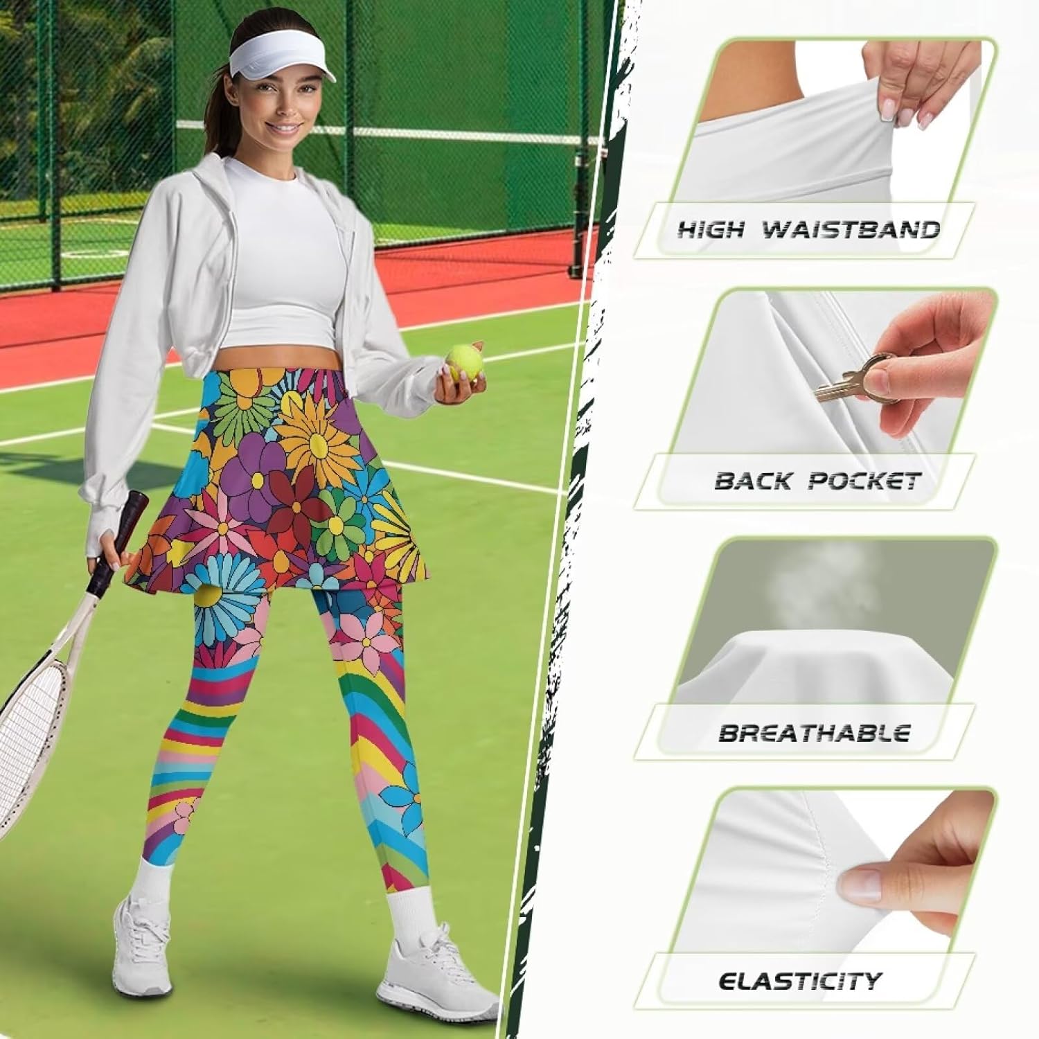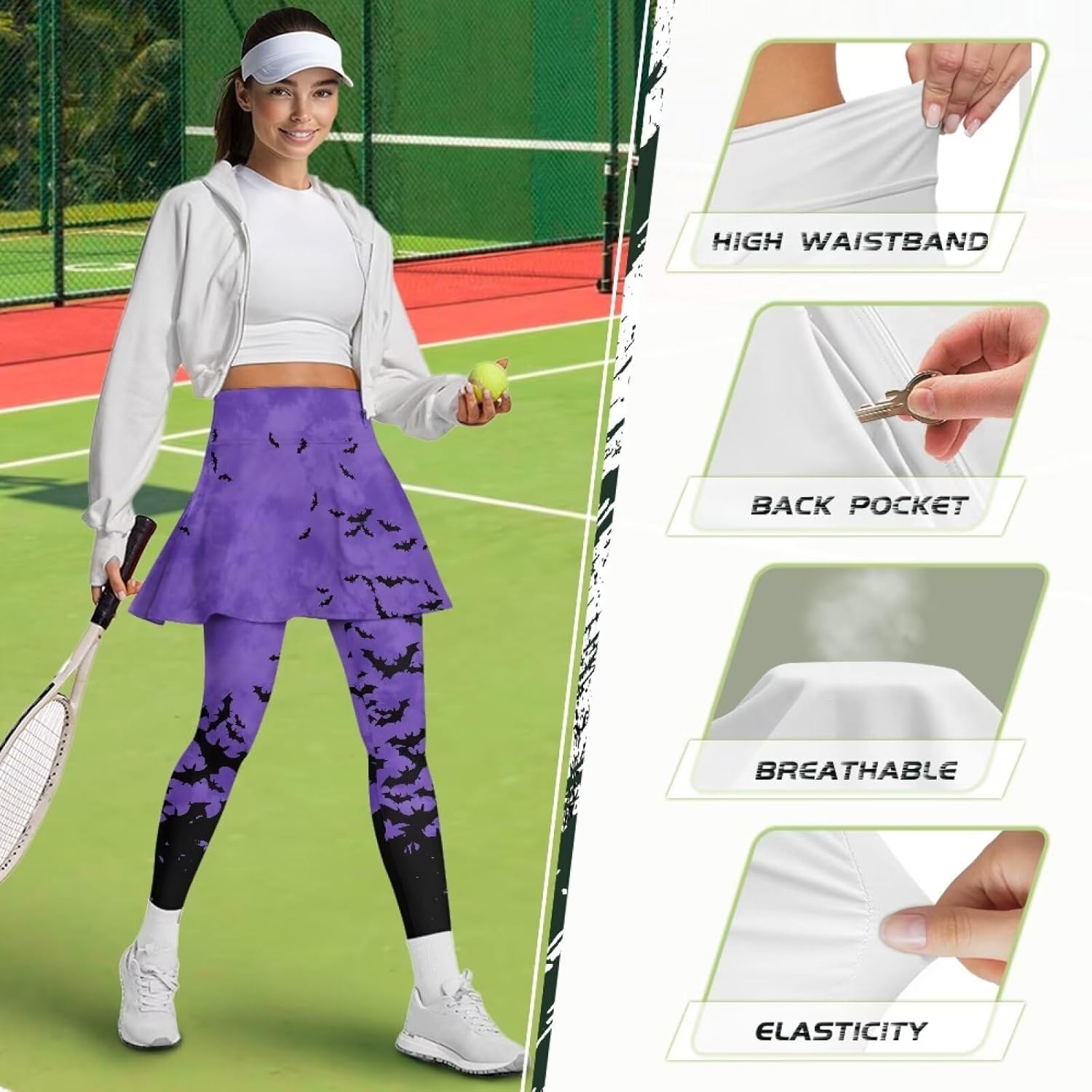 The fabric of our pocket yoga pants is soft and comfortable, skin-friendly, breathable and elastic, with good drape; the skirt covers the hips and keeps it safe; our yoga pants are not picky about leg shape, and you can instantly become long legs after putting them on Reasonable Design: combination of pants and skirt, trendy style, fashionable and versatile, the inner belt can be greatly adjusted to fit the waist. The skirt is sewn with a hem to also eliminate the muffin top effect Applicable Scenarios: This fashionable yoga pants is suitable for running, yoga, fitness, Pilates, outdoor mountaineering and camping, etc Material: Polyester Package Includes: Skirted Leggings for Women *1 Size Chart(inch): XS-Shirt Length:(12.52"),Waist:(25.20"),Hip:(30"),Length:(26.30") S-Shirt Length:(12.99"),Waist:(27.17"),Hip:(32.01"),Length:(26.69") M-Shirt Length:(14.21"),Waist:(29.17"),Hip:(34.02"),Length:(27.20") L-Shirt Length:(14.80"),Waist:(31.18"),Hip:(35.98"),Length:(27.52") XL-Shirt Length:(15.31"),Waist:(33.19"),Hip:(37.99"),Length:(27.99") 2XL-Shirt Length:(15.31"),Waist:(35.20"),Hip:(40"),Length:(28.39") 3XL-Shirt Length:(15.98"),Waist:(37.17"),Hip:(41.50"),Length:(28.70") Provide a variety of choices for you. this size data due to different measurement methods, the error within 1-2cm is normal