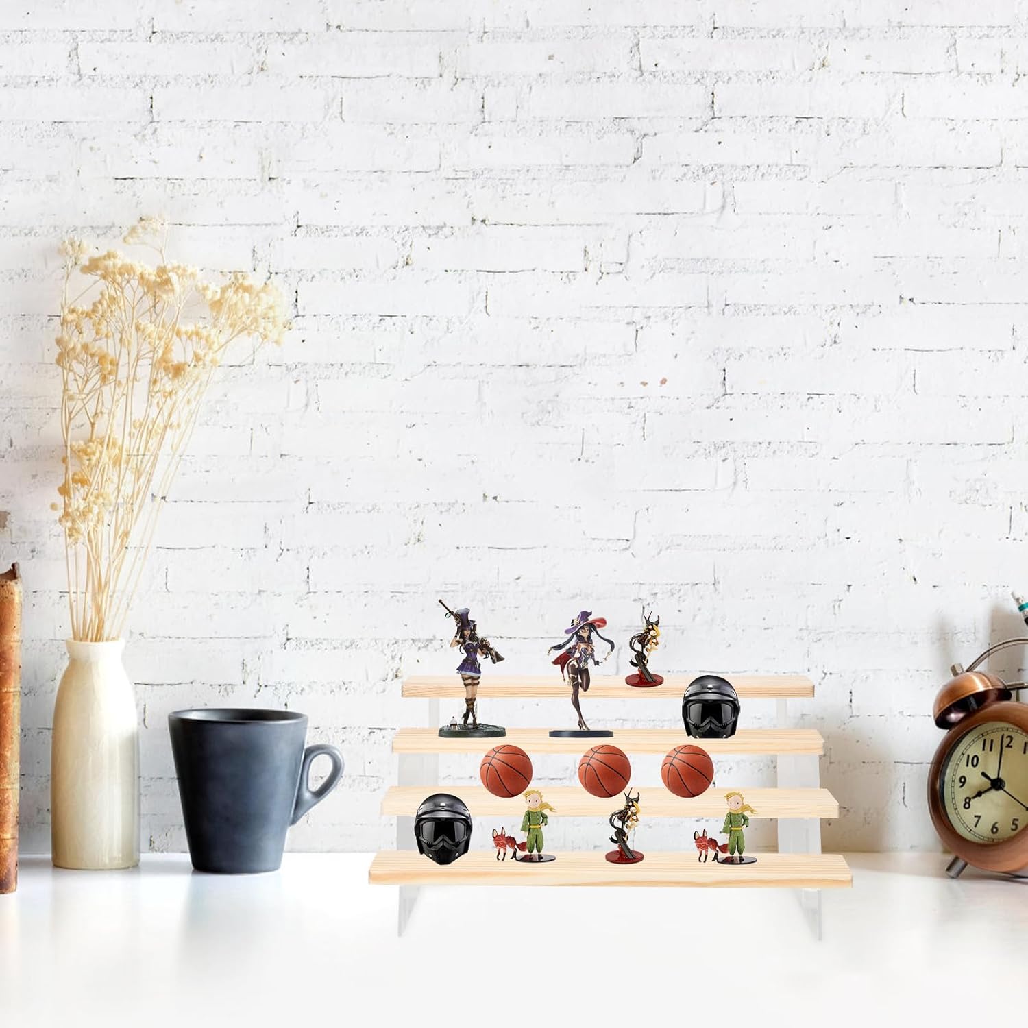 Package List 1 x Display Rack Characteristics - Size: About 30.00X22.00X17.00cm/11.79X8.65X6.68in -Product Info:Solid wood storage rack - Material: Acrylic, wood - Wonderful workmanship, smooth polishing, multiple storage function, convenient and easy to use display risers wood. - - Sturdy acrylic and wood materials, practical for a long time to use, you can display your favorite on the rack. - Fashionable and chic appearance and style design, simple color, and practical, can be used in many places. - The product can be placed in the living room, desk, room, etc., a decorative prop in your home merchandise display shelf. - This doll display stand is very and fashionable, which is also very decorative and practical model display shelf.Goods Informationmulti-tier display shelf Fine workmanship, easy assembly, and beautiful display.wood display risers This display stand is made of wood and acrylic.display riser stand The ladder design has a sense of ascending, and the displays on each floor do not block each other and are neatly displayed