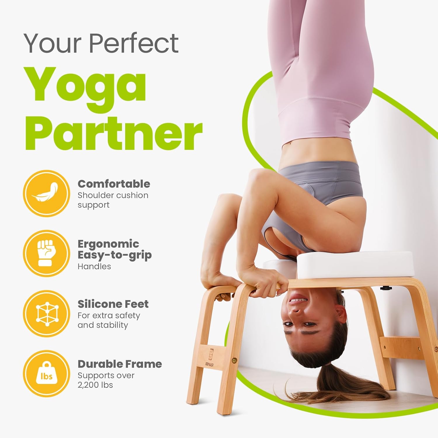 BODYWAKER Yoga Headstand Bench, Stand Yoga Chair for Balance Training, Core Strength Building, Upside Down Chair for Relaxation, Handstand Trainer Inversion Chair for Home Gym