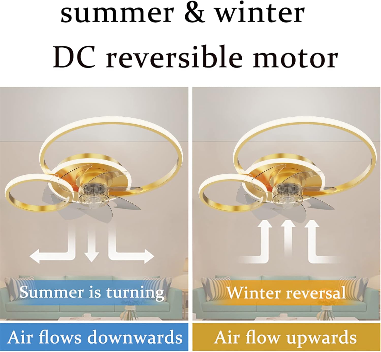 YUEGOO Ceiling Fans with Lamps,Silent Ceiling Fans with Lights and Remote Reversible Fan Light 6-Speed Winter and Summer Mode with Dimmable Light Led Ceiling Light Living Room Bedroom/D/2 Circles