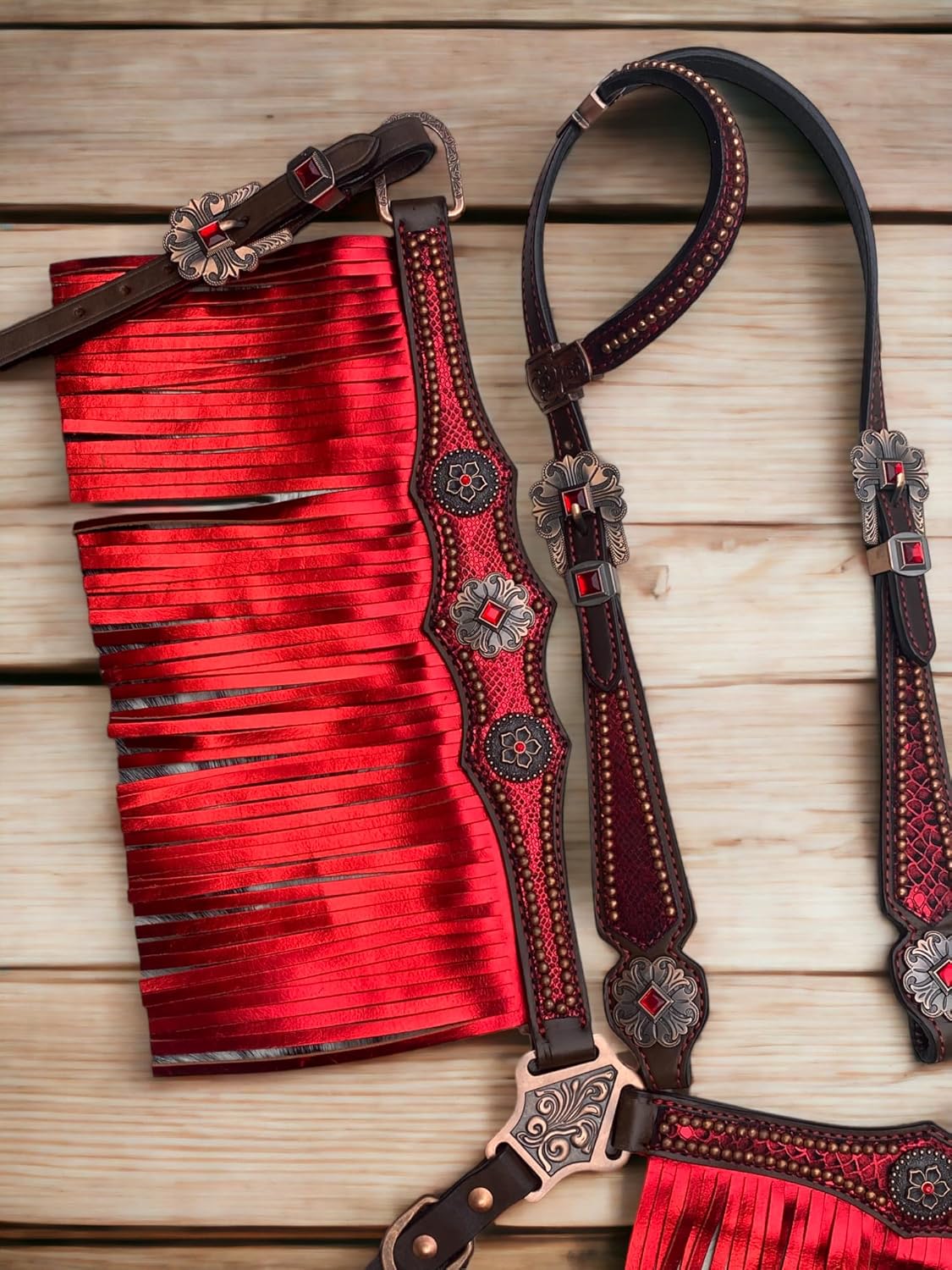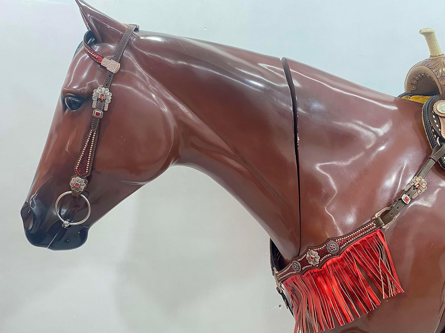 A leather horse breast collar set is a must-have piece of tack for horse riders from MOUSM. It consists of a breast collar, which is a strap that goes across the horse's chest, and matching attachments such as a martingale or a pulling collar. This set is designed to help secure the saddle in place and provide additional control and support to the horse during riding or working activities. The breast collar is typically made from high-quality leather, known for its durability, strength, and aesthetic appeal. It is carefully crafted to ensure a comfortable fit for the horse, with adjustable straps that allow for proper sizing and customization. The leather horse breast collar set is available in various styles and designs to suit different riding disciplines and personal preferences. Some sets feature intricate tooling, decorative stitching, or embossed patterns, adding a touch of elegance and uniqueness. Additionally, the attachments that come with the set, such as a martingale or pulling collar, serve different purposes. A martingale is used to limit the horse's head movement, providing better control and preventing the horse from raising its head too high. A pulling collar is designed to assist with pulling or draft work, evenly distributing the weight across the shoulders and allowing the horse to work more efficiently.
