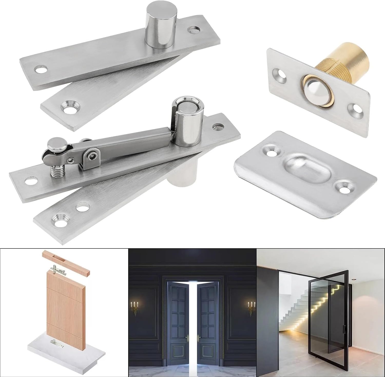 1pc Heavy Duty Stainless Steel Pivot Hinge Set for Secret Door / Swing Door / Wood Door with Door Ball Catch 360 Degree RotationPackage Including: 1 x Door Ball Catch