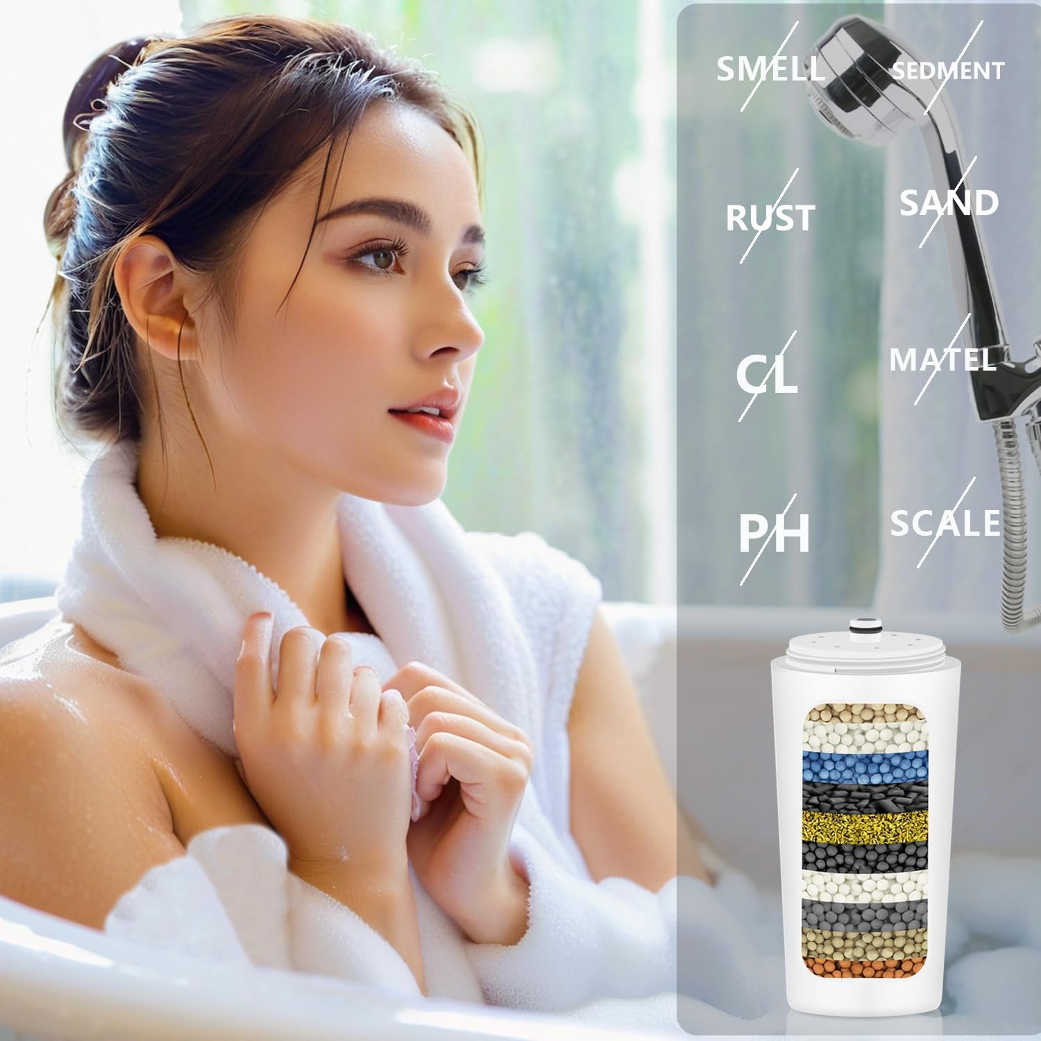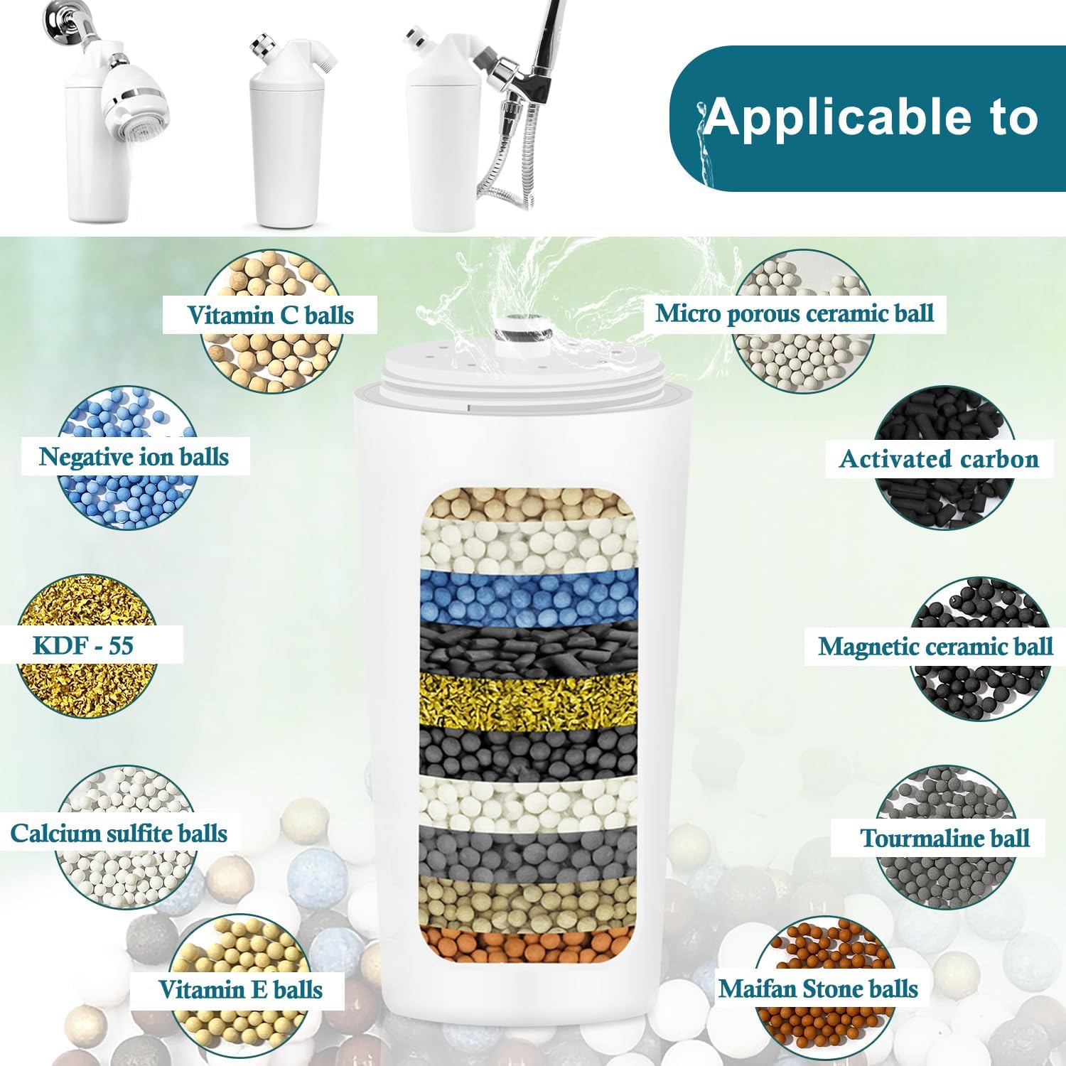 Invisible pollution is harming your skin. Chengfeng's Water Replacement Filter for Shower Head helps you filter outmud, rust, impurities。 1. Water Replacement Filter for Shower Heads, compatible with Aquasana AQ-4100, AQ-4100NSH, AQ-4105, AQ-4105CHR, AQ-4125, and universal filters, offering superior filtration performance. This shower head filter utilizes alkaline ceramic balls, activated carbon, calcium sulfite, and other mineral filter media. Its superior filtration technology maximizes the removal of various heavy metals, sand, and sediment from water, removing impurities that harm the skin.2. This filter purifies water, softens skin and hair, prevents dirt buildup, improves water quality, cares for skin, and revitalizes it, giving you a completely new level of comfort and well-being in your shower.3. Our high-performance shower filter improves flushing performance without reducing existing water pressure. It not only deeply purifies water but also filters water for a wider range of uses, ensuring consistent water quality.4. Installation is quick and easy, taking only minutes and requiring no tools. Simply unscrew the shower head by hand, remove the old one, and replace it with a new one, ensuring the gasket is seated in the groove inside the filter to prevent leaks. You should then see the water flow return to normal within seconds.5. For a better skincare experience, we recommend replacing the filter every 2-3 months. We offer a 100-day after-sales warranty, giving you the best possible protection. If you have any questions, please feel free to contact us.