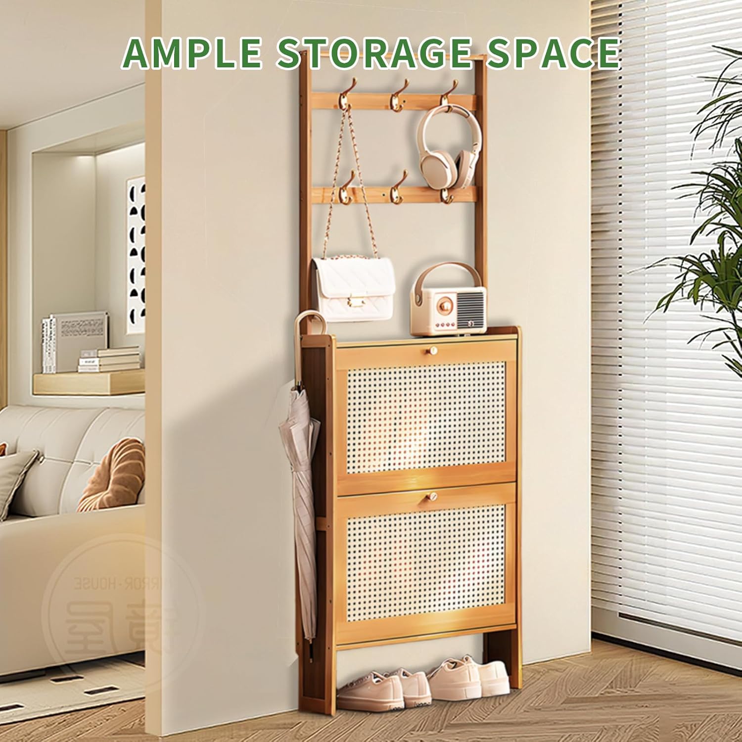 | Storage Options | Flip Drawers, Hooks |