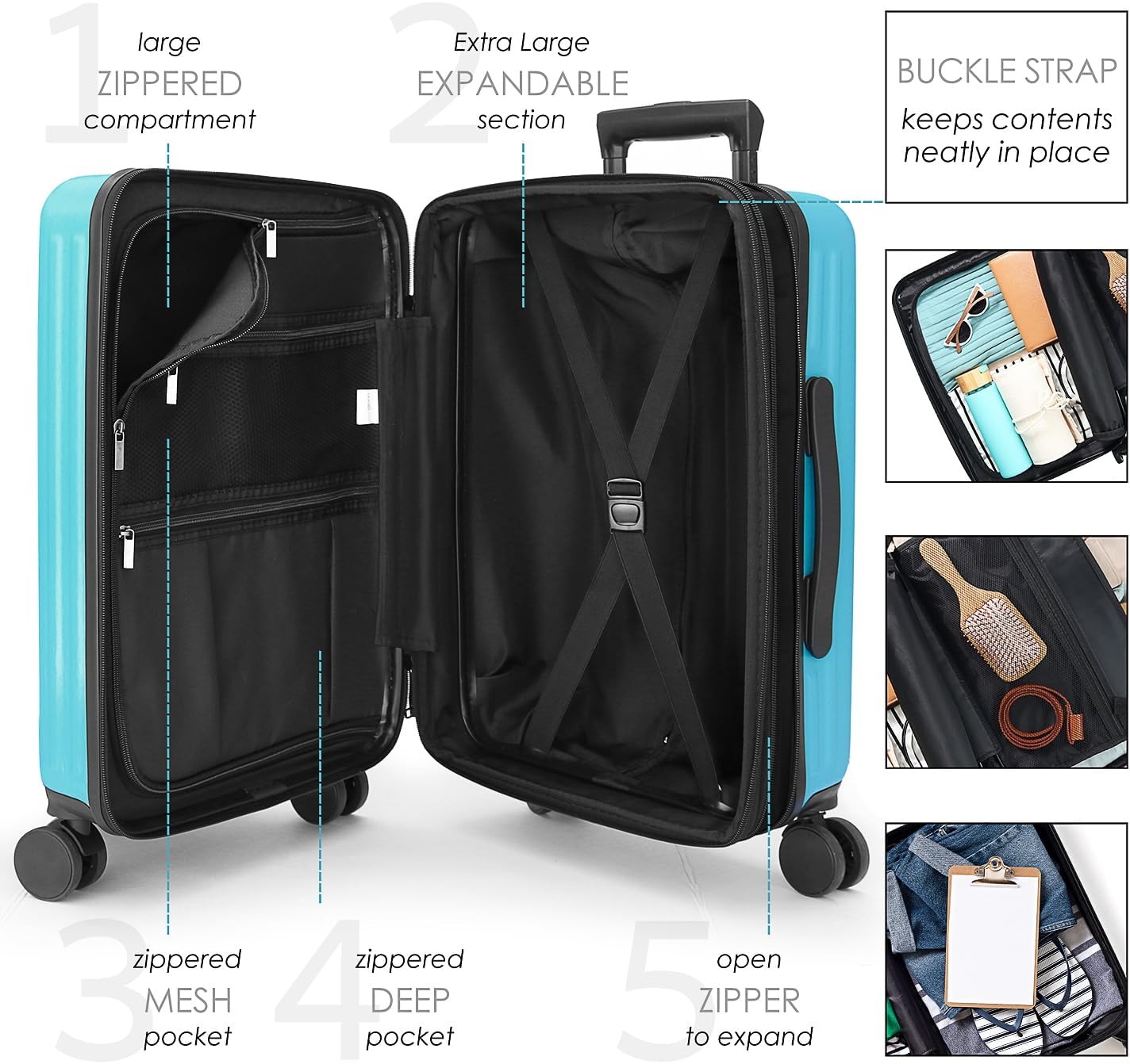 22 Inch Carry On Luggage, Carry On Suitcase with Wheels, Expandable Hardside Luggage Carry On, Small Suitcase, Hard Shell Carry-on Luggage, Spinner Luggage with Cosmetic Carry On Bag