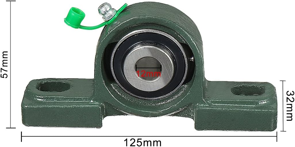 1.12mm drills holes Diameter UCP201 Pillow Block Bearing Flange.2.This Bearing is a self-aligning, pillow block bearing, you can adjust or replace the bearing easily.3.These ball bearing with two rubber debris sealed to prevent ingress of dirt, water and foreign matter.4.This one-piece pillow block housing allows for a stationary outer ring and rotating inner ring. 5.The bearing with a filler well,You can add lubricant properly after a period of time.6.Pillow Block Bearing Flange Block Bearing is widely used in various of machinery, conveyering systems, film processing machinery, spin machine, printing machiner.SpecificationsProduct Name: Pillow Block BearingPackage Content: 2pcs x Pillow Block BearingMaterial: Bearing SteelColor: GreenWeight: 1005gModel: UCP201Hardness: 65Inside Diameter: 12mmOverall Size: 125 x 32 x 57mm(L*W*H)Mounting Hole Size: 16 x 12mm(L*W)Mounting Hole Distance: 95mm(568uiyh3949sedt2082)Enviamos el envío desde China por un período de 10 a 30 días.