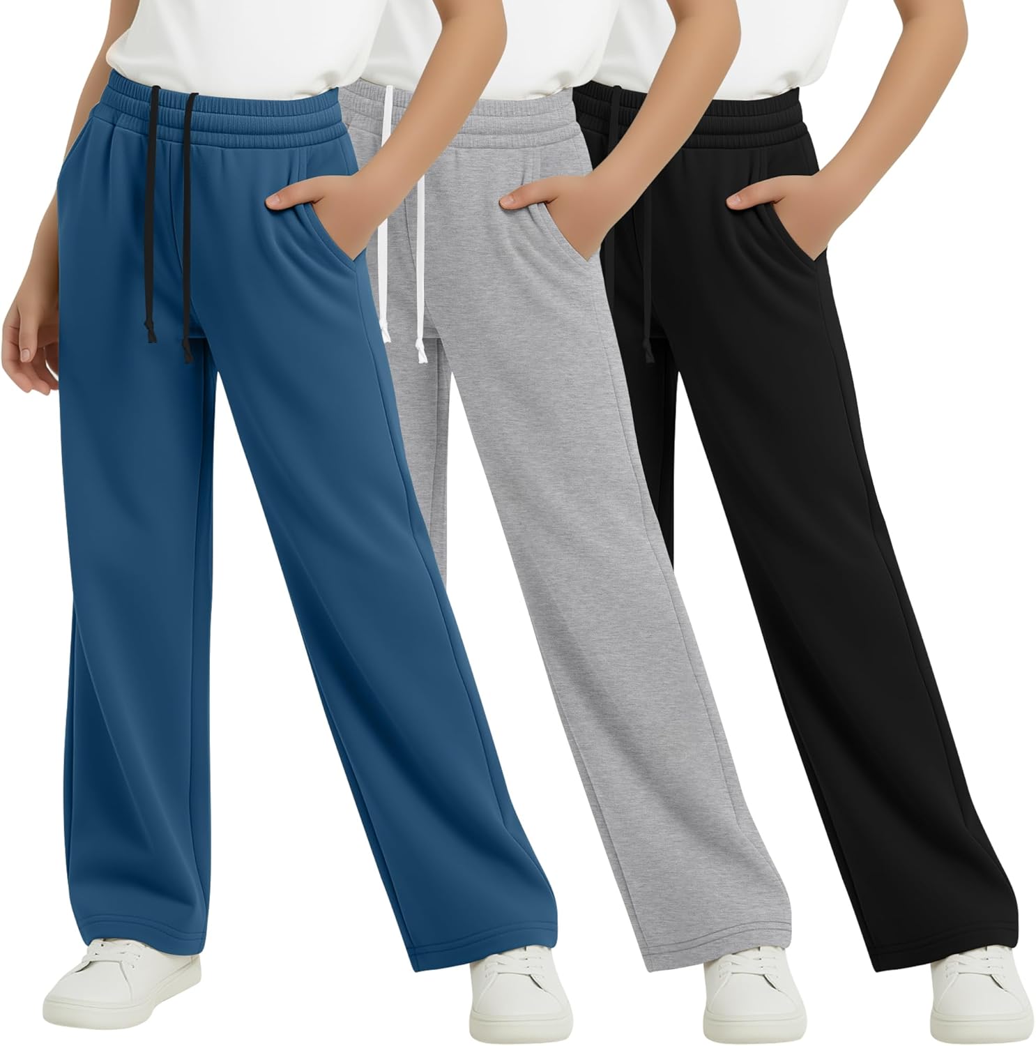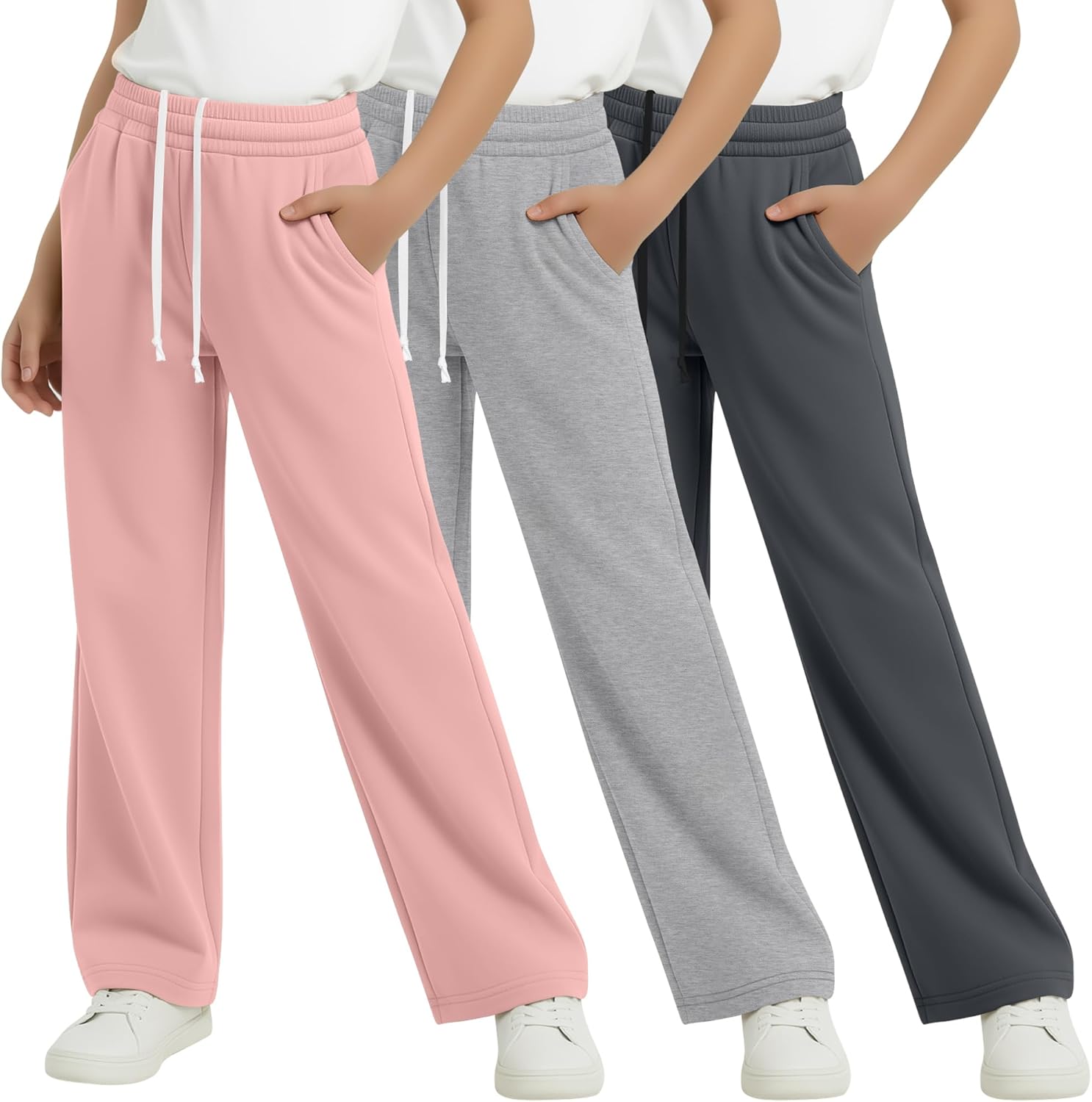 Features: Athletic pants for girls feature practical pockets, making it easy for children to carry various small items, and are available in multiple colors, making them a great gift for children. Juniors girls sweatpants are easy to care for, you can throw them in the washing machine or mobile phone, hang them to dry naturally. Specifications: Material: 95% Polyester, 5% Rayon Package includes: 3 x Girls wide leg sweatpants Notes: Manual measurement, please allow slight errors on size. The color may exist a slight difference due to different screen displays