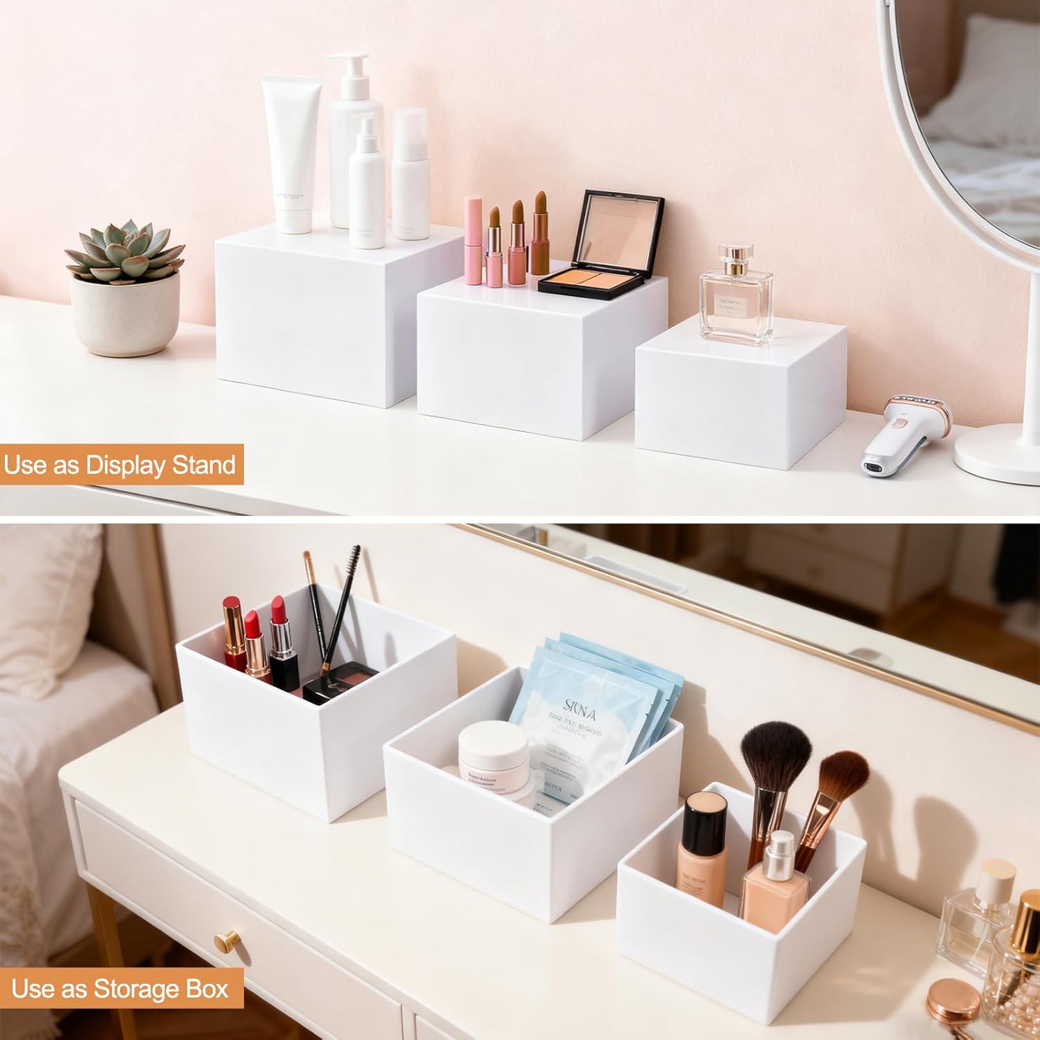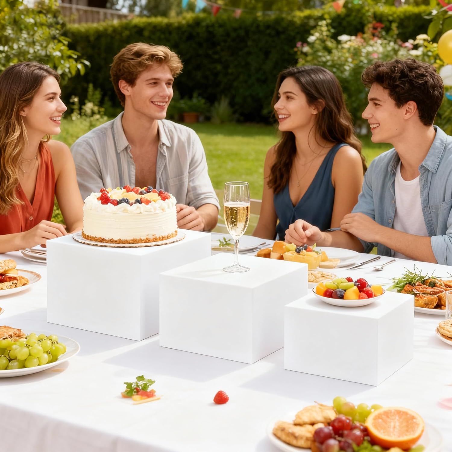 Elevate your presentation game with our Versatile 2-in-1 Acrylic Buffet Risers. Whether you are hosting a high-end wedding, organizing a dessert table, or showcasing merchandise in a retail store, these risers are designed to add visual depth and sophistication to any display. Crafted from high-quality, durable acrylic, these risers are not just functional—they are a stylish addition to your decor arsenal. Why Choose Our Buffet Risers? 2-in-1 Multifunctional & Reversible Design Maximize your value with our innovative hollow-base design. Unlike standard risers that serve only one purpose, these stands offer dual functionality: Upright Use: The top platform acts as a classic food riser, perfect for creating tiered buffet displays. Inverted Use: Flip the riser over, and the hollow bottom transforms into a convenient storage box for home items, spices, or small accessories. This integrated structure provides exceptional versatility without taking up extra space. Stable & Spacious Load-Bearing Surface Safety and stability are paramount in busy environments. Made from tough, non-breakable acrylic material, these risers are built for regular use and provide a stable load-bearing surface. The open, spacious design allows for the orderly placement of platters, desserts, or merchandise, ensuring easy access for guests while maintaining a clean, organized look—even in tight spaces like home kitchens or boutique counters. Fashionable Minimalist Aesthetic Featuring a sleek, minimalist design in classic white, these risers seamlessly blend into any decorative theme. Whether your style is modern, rustic, or elegant, these stands enhance the attractiveness of your display. Use the different sizes to create dynamic layers and visual depth, turning a simple table into a stunning centerpiece. Effortless Cleaning & Space-Saving Storage We know that post-event cleanup can be a hassle. These risers feature a smooth, shiny surface that resists stains and fingerprints. A simple wipe with a damp cloth is all it takes to restore their brilliant, long-lasting appearance. When the party is over, the nesting design allows all six risers to stack neatly inside one another, saving valuable storage space in your cabinets. 🎉 Endless Applications Catering & Events: Create stunning dessert or appetizer tiers. Retail: Perfect for displaying cosmetics, jewelry, or handicrafts. Home Decor: Showcase collectibles, photos, or candles. Art Exhibitions: Elevate sculptures or featured pieces. Package Includes: 6 x White Acrylic Buffet Risers (5x6x6.8x7x7.5x8 Inch) 6 x display cards 1 x pen marker