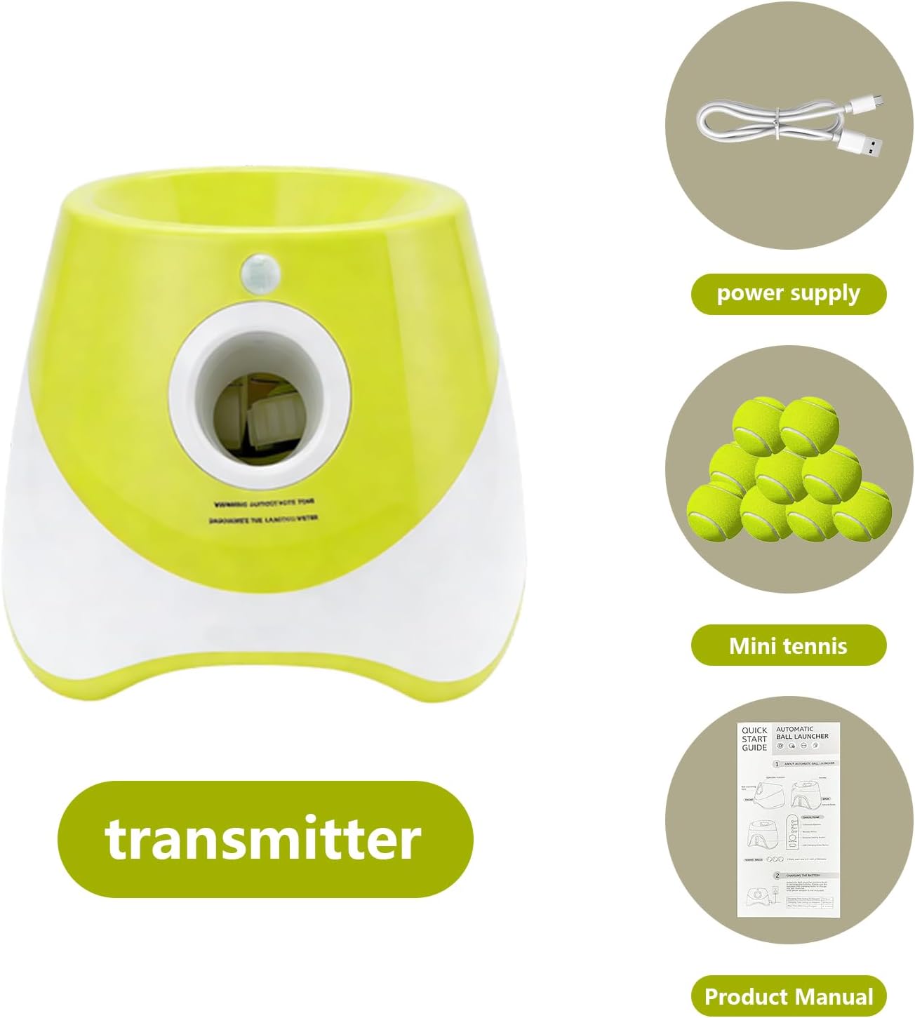 | Included Components | Dog ball machine body, charger, 9 small baseballs. |