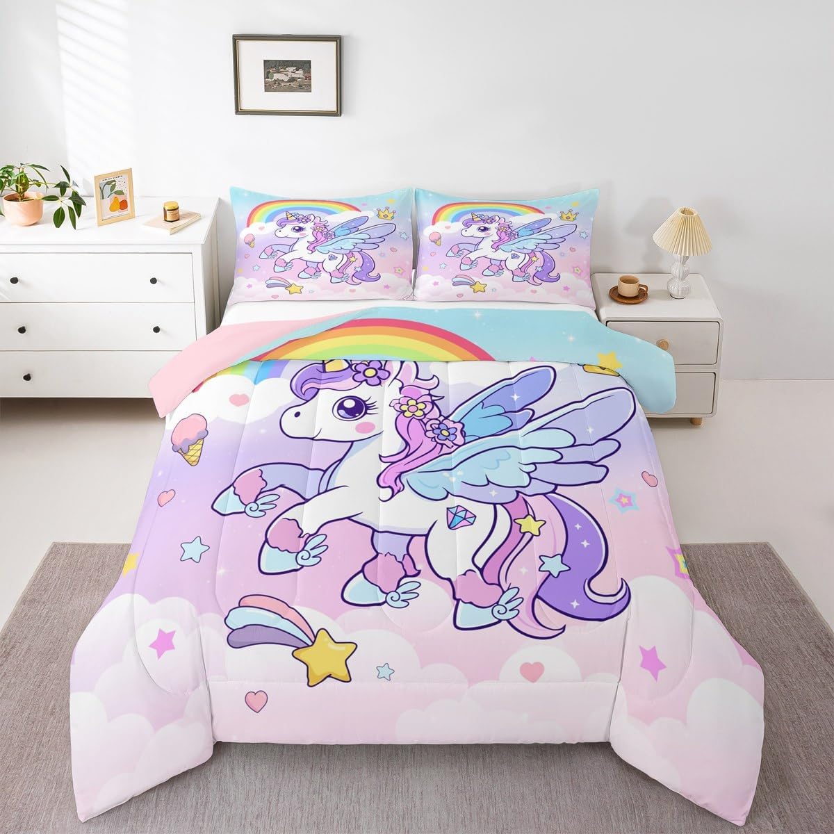 Makeover your bedrooms every season with our comforter sets; good item for your room, girls boys youth room, master bedroom Also a great decoration idea for your mom, dad, sister, brother, grandma, wife, husband, daughter, son and all other beloved Size Information:1 Toddler size comforter 42" X 58" and 1 pillowcase 30" X 20"1 Twin size comforter 68" X 90" and 1 pillowcase 30" X 20"1 Full size comforter 79" X 91" and 2 pillowcases 30" X 20"1 Queen size comforter 90" X 90" and 2 pillowcases 30" X 20"1 King size comforter 104" X 90" and 2 pillowcases 36" X 20"Useful and practical: A practical product for homes, dorm rooms, hotels, guest rooms. Comfortable to use for being polyester which is soft and breathable Unique design:Vivid colors and clear printed with digital printing. These unique designs match well with various color of your rugs, curtains, headboard, furniture, and all other decor accessories Characteristic:As manufacturers of digital printed home textiles, we follow current trends and bring you new home fashion Either a comforter to your family or friend, relative or boyfriend girlfriend, or to yourself, the item should be interesting and authentic Note:The comforter and pillow cases are printed on the front side only, the back of them are white colored