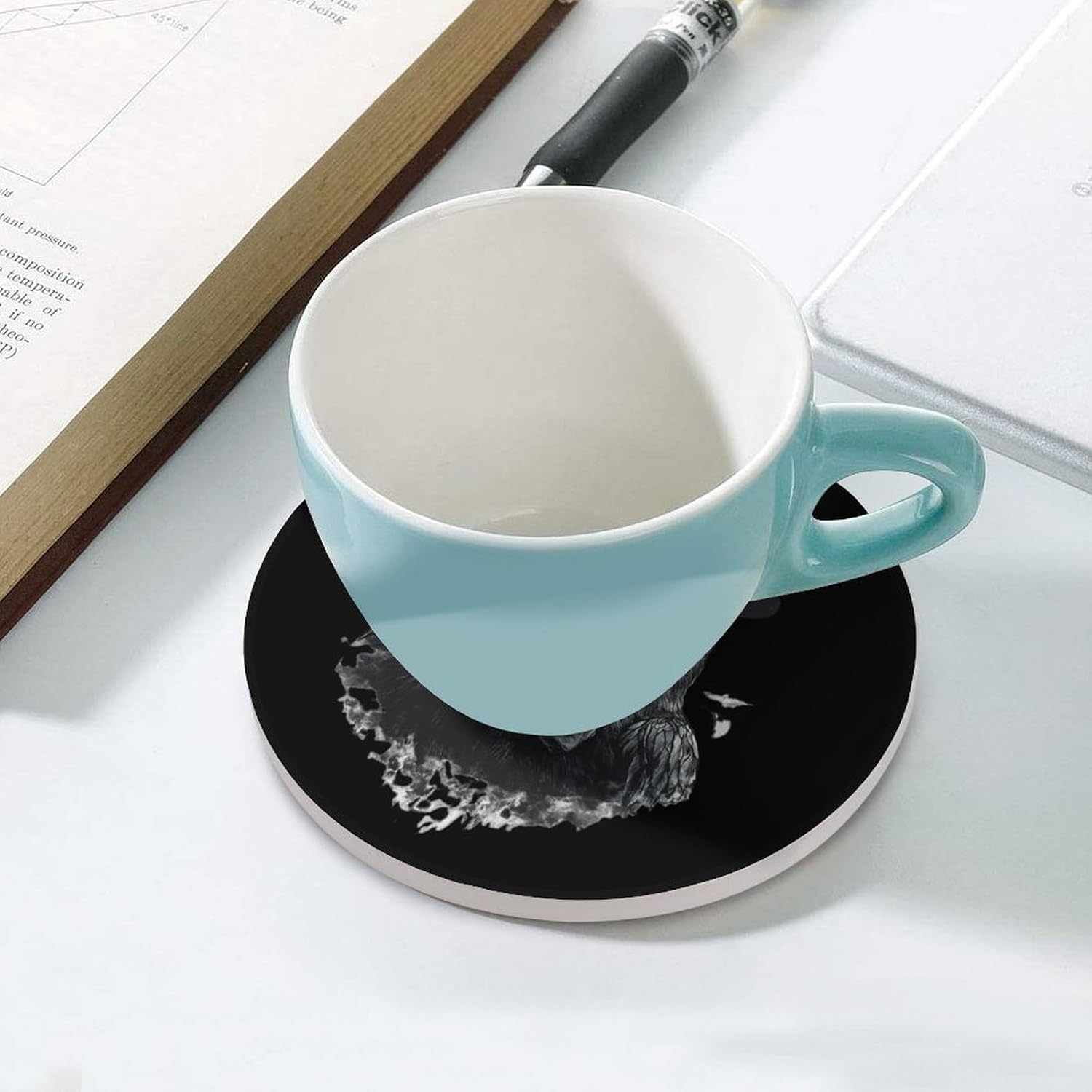 coasters,coasters set of 4,coasters set of 6,cute coasters with Funny Pattern Printed Ceramic Coasters with Cork Base Cup Holder Absorbent for Drinks Coasters Round Tabletop Protection Mat Decorative Cute Coffee Cup Beverage Coasters