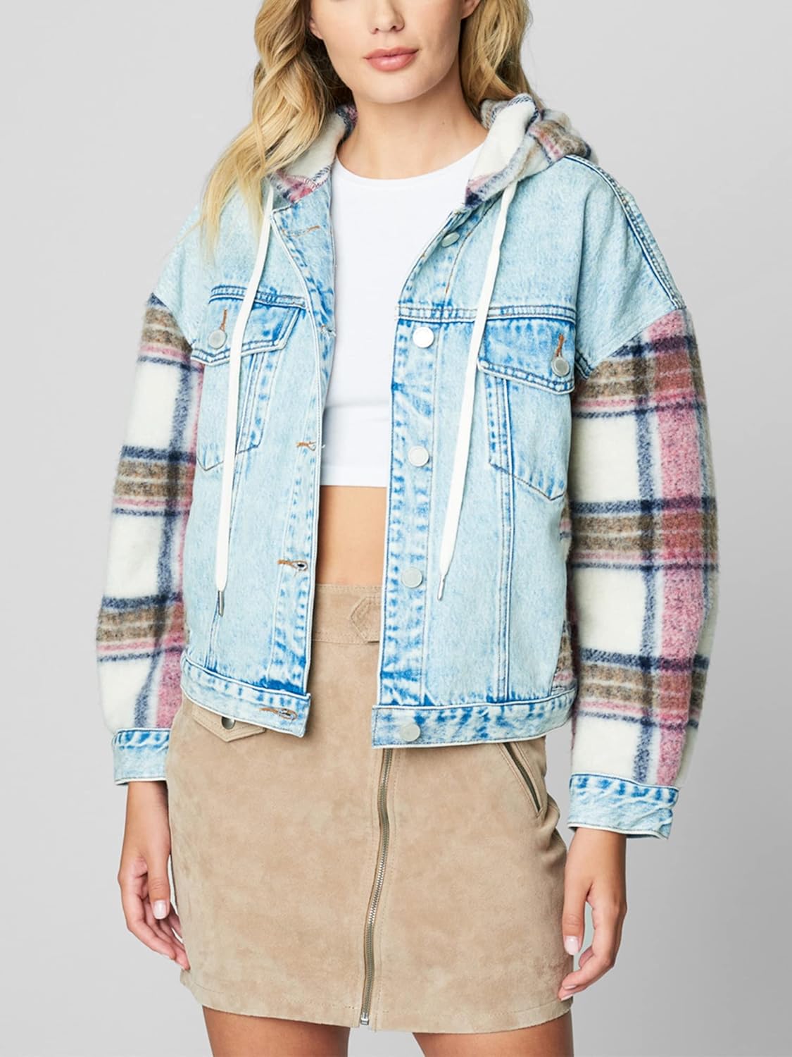 | Style | Plaid Denim Patchwork Jacket |